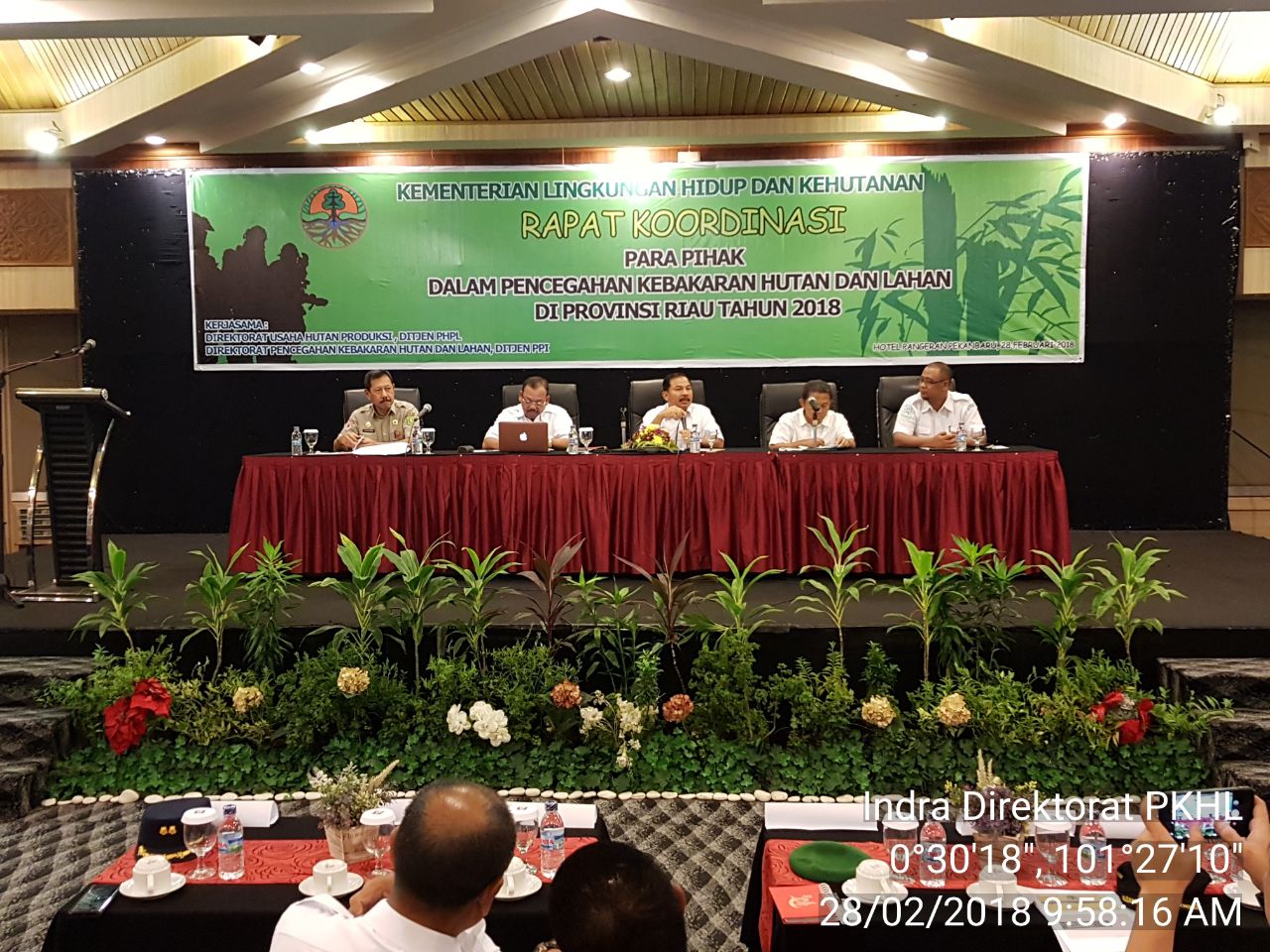 Dalam rangka memperkuat strategi pengendalian kebakaran hutan dan lahan (karhutla) di wilayah konsesi, KLHK menyelenggarakan Rapat Koordinasi Para Pihak dalam Pencegahan Kebakaran Hutan dan Lahan di Provinsi Riau Tahun 2018, di Pekanbaru (28/02/2018).