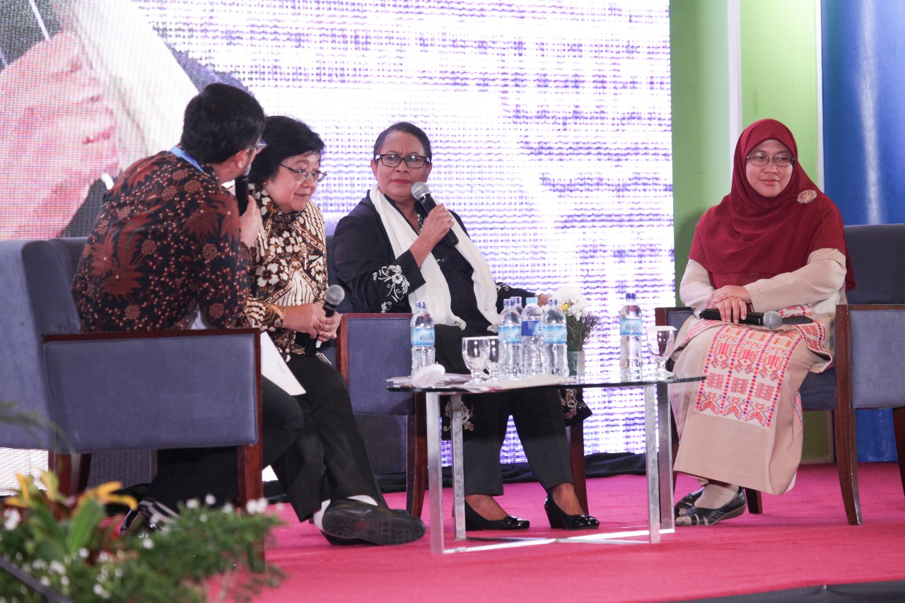Mendukung upaya Pembangunan Pemberdayaan Perempuan dan Perlindungan Anak (PPPA) di Indonesia, Menteri LHK Siti Nurbaya menghadiri talkshow dalam Rapat Koordinasi Nasional (Rakornas PPPA) di Kota Pangkal Pinang, Provinsi Kepulauan Bangka Belitung (01/03/2018). Bersama-sama dengan Menteri PPPA, Yohana Susana Yembise, Menteri Siti menyampaikan apresiasinya atas kemajuan yang telah dicapai oleh para perempuan di Indonesia, khususnya dalam berkiprah di bidang birokrasi dan legislatif.