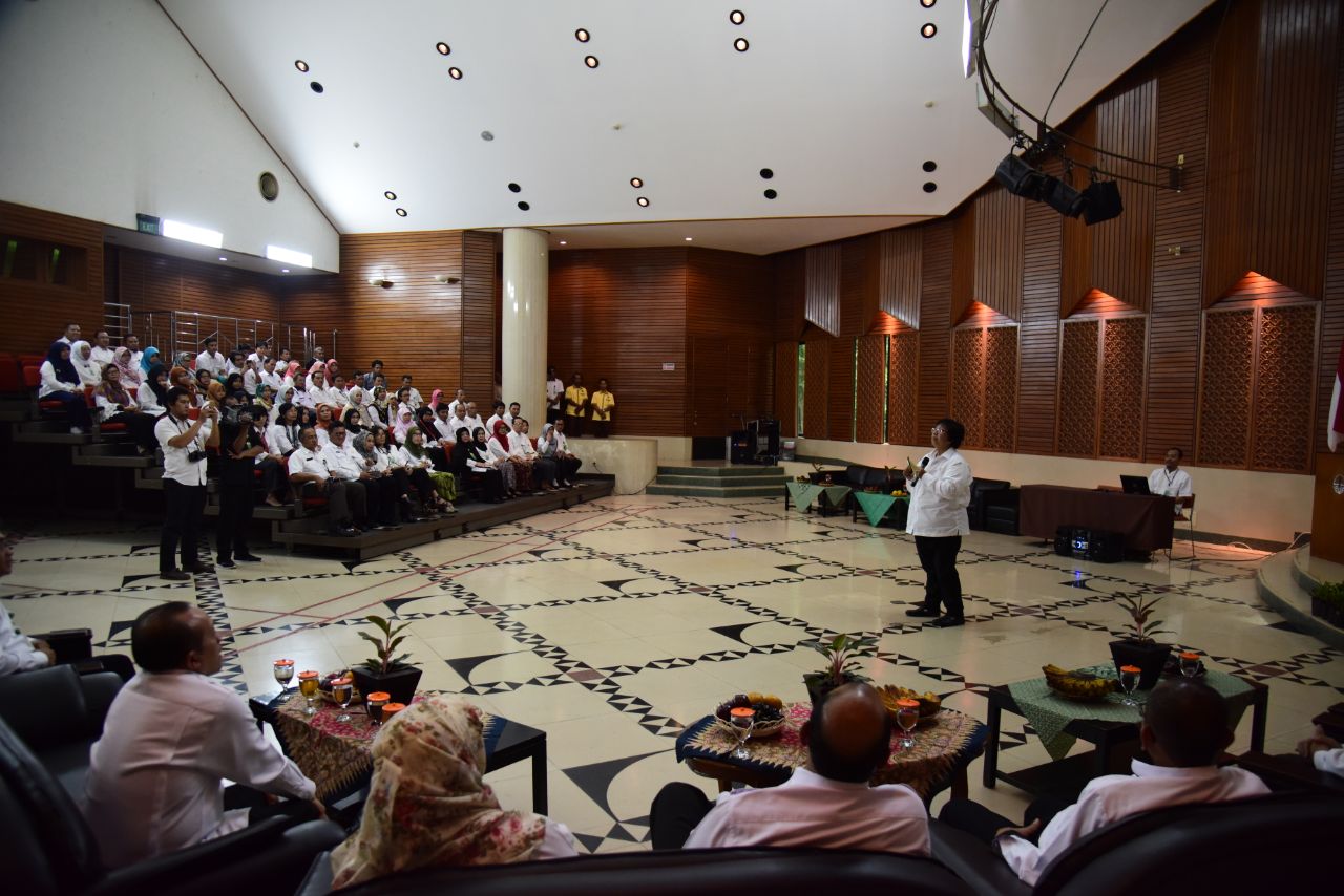 Senyum sumringah diperlihatkan Menteri LHK Siti Nurbaya, saat dirinya mengunjungi Pusat Penelitian dan Pengembangan Kualitas dan Laboratorium Lingkungan (P3KLL) dan Pusat Pelatihan Masyarakat dan Penyuluhan Generasi Lingkungan (Puslatmas PGL) di Serpong, Jawa Barat (14/03/2018). Saat memberikan sambutan di Auditorium Serpong, Menteri Siti menceritakan, lokasi tersebut tidaklah asing baginya, mengingat sebelumnya beliau sering mengunjungi lokasi ini untuk tes riset unggulan, saat menjabat Kepala Bidang Litbang Bappeda Lampung.