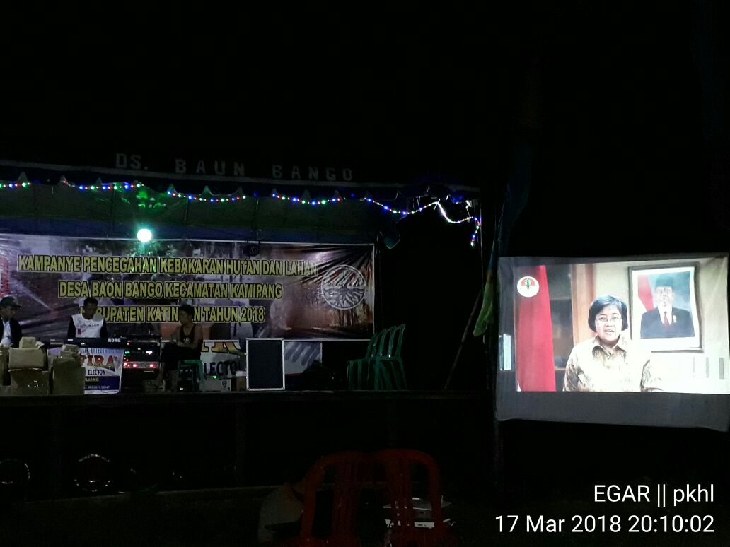 Upaya penyadartahuan kepada masyarakat akan pentingnya mencegah kebakaran hutan dan lahan (karhutla), terus dilakukan oleh KLHK. Sebagaimana kampanye yang dilaksanakan di Desa Baun Bango, Kecamatan Kamipang, Kabupaten Katingan, Kalimantan Tengah, melalui Balai Pengendalian Perubahan Iklim dan Kebakaran Hutan dan Lahan (PPIKHL) Wilayah Kalimantan (17/3/2018).