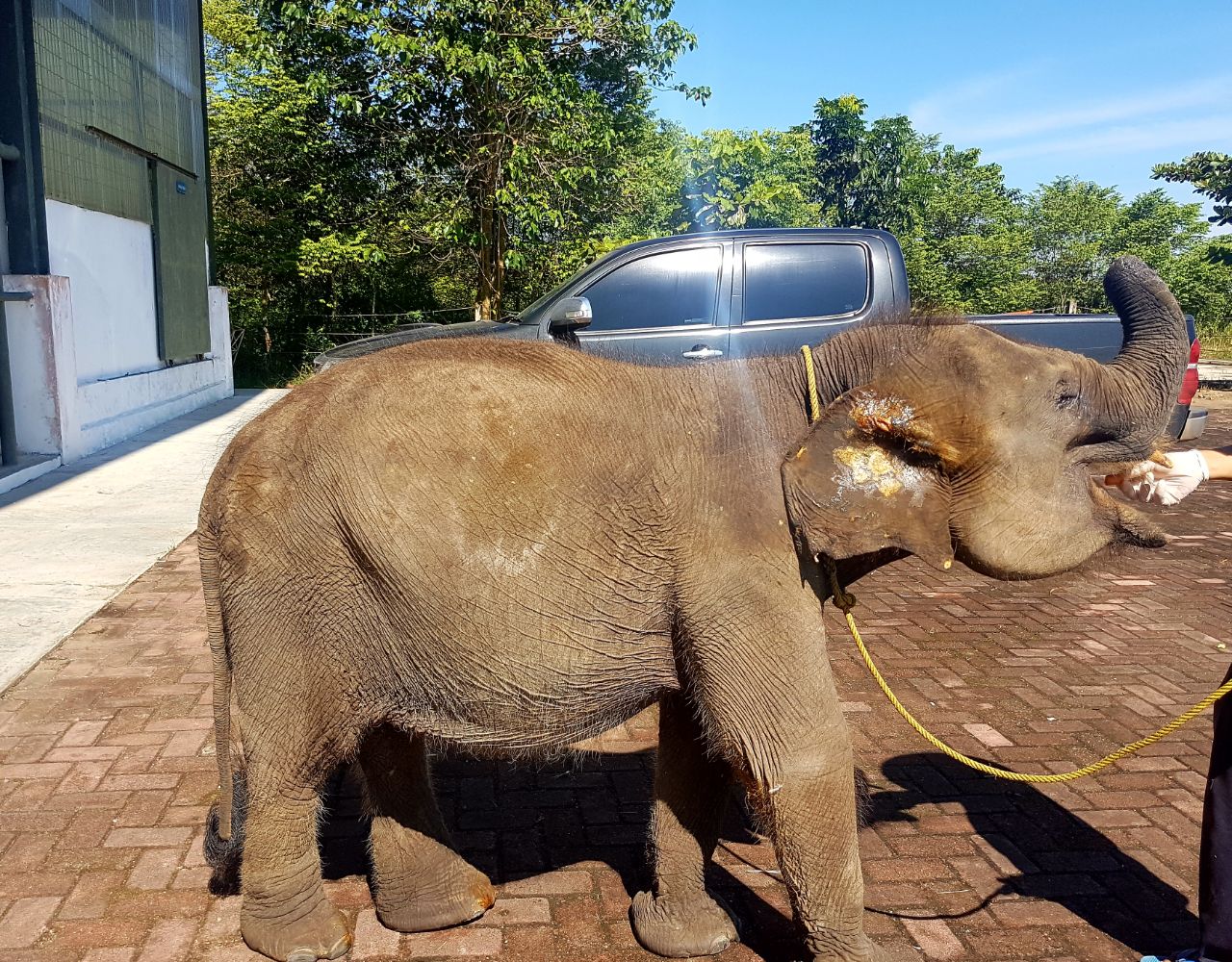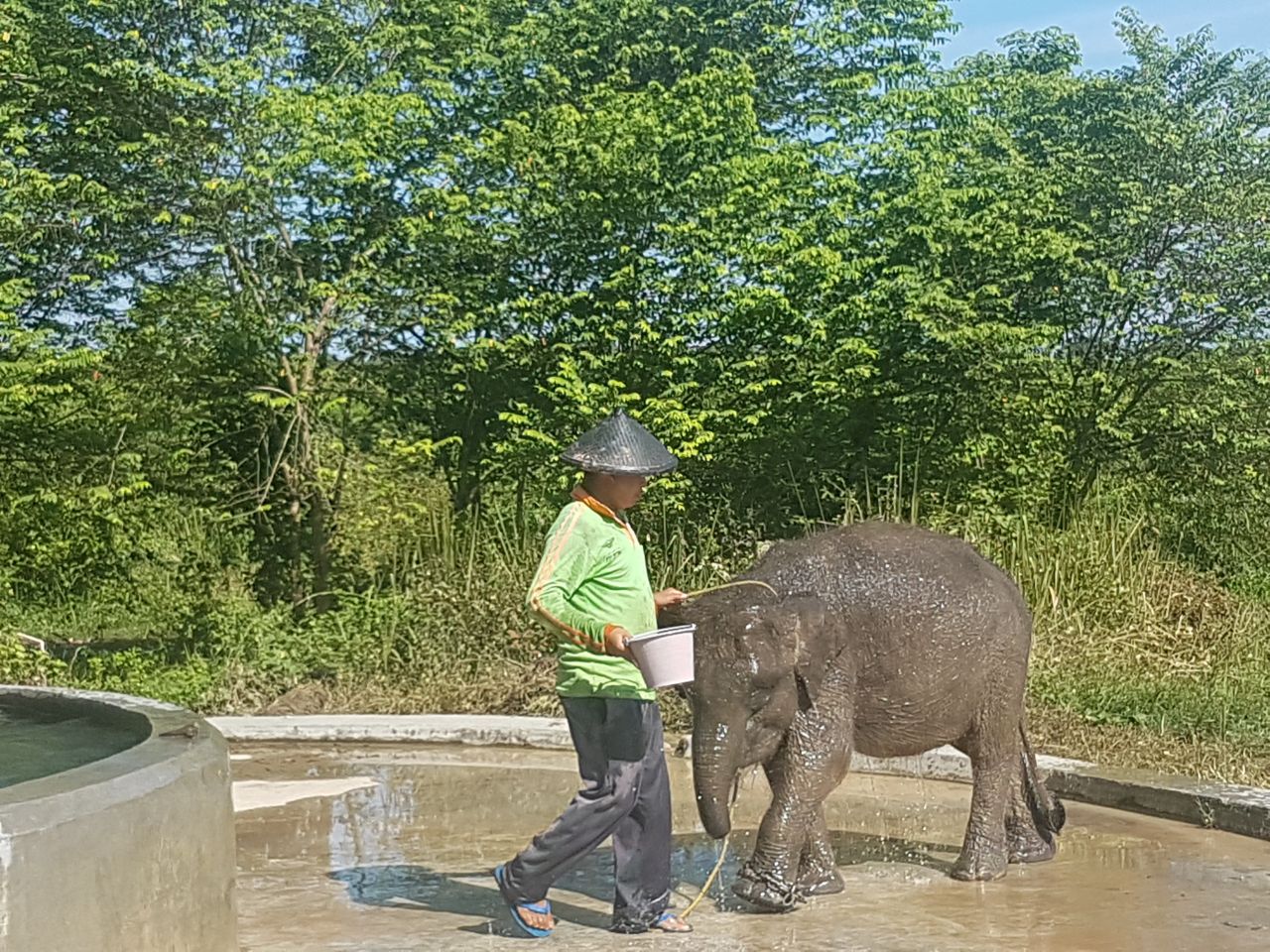 ERIN, Gajah kecil berbelalai buntung yang tengah dirawat di Pusat Latihan Gajah (PLG Way kambas) Lampung, kondisinya kini semakin sehat.