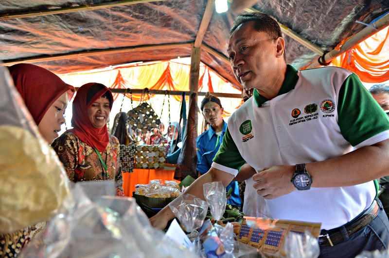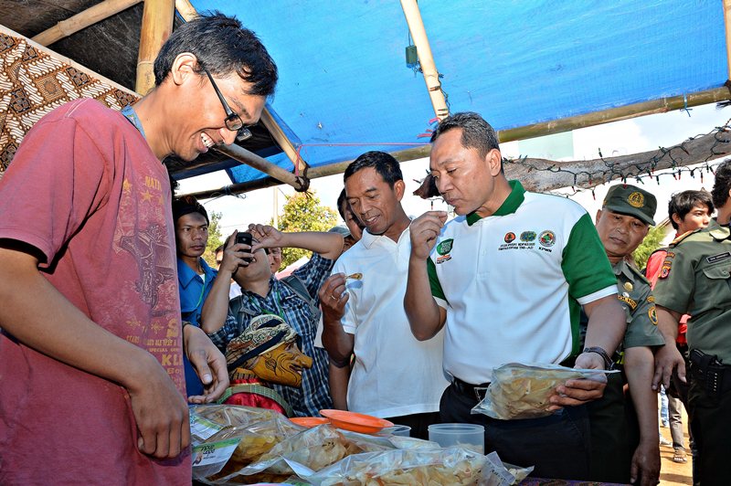 Selesai berkeliling, Menhut menyempatkan mampir ke stand bazaar dilokasi festival yang menyuguhkan beberapa aneka makanan serta hasil seni dan geliat ekonomi masyarakat di kawawan desa Sarongge.