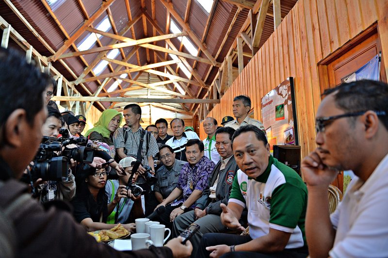 Menurut Menhut Wisata Alam Desa Sarongge telah bertransisi menjadi desa wisata, oleh karena itu saya sangat gembira dapat menghadiri Festival Sarongge 2013, dan Desa Sarongge akan menjadi salah satu alternatif sumber penghasilan utama untuk warga setempat. (arset). FOTOPUSHUMAS/arset