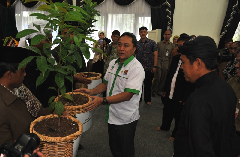 Menhut secara simbolis menyerahkan sebanyak 10 ribo bibit pohon kepada santri pondok pesantren di Kabupaten Purwakarta