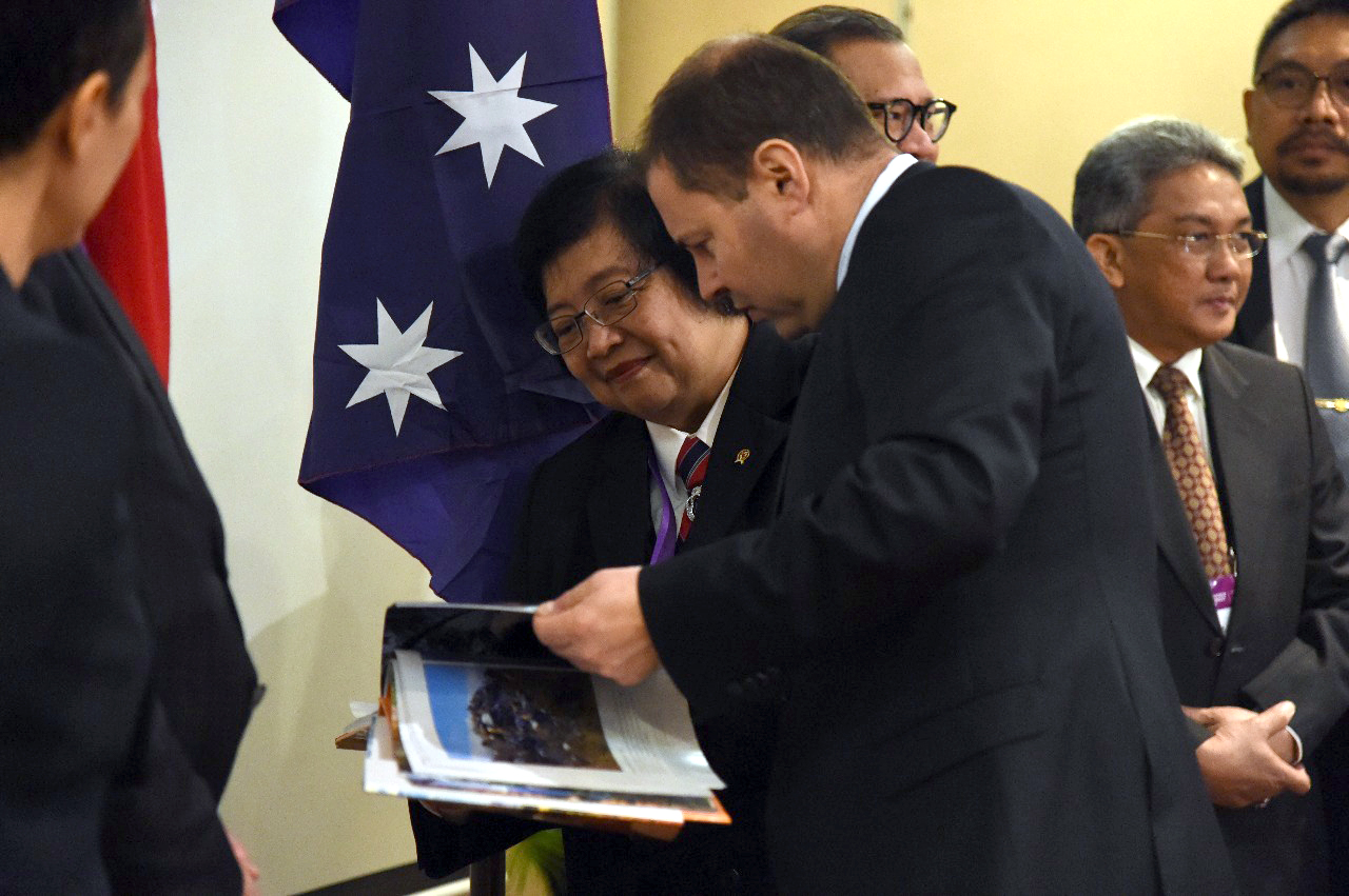 Di sela-sela penyelenggaraan Asia Pacific Rainforest Summit (APRS) ketiga. Menteri Lingkungan Hidup dan Kehutanan Republik Indonesia, Siti Nurbaya dan Menteri Lingkungan dan Energi Australia, H.E. Josh Frydenberg mengadakan pertemuan Bilateral (23/4/2018) untuk membicarakan beberapa hal. Menteri Siti mengawali pembicaraan dengan menerangkan teknis acara pada pembukaan APRS 2018.