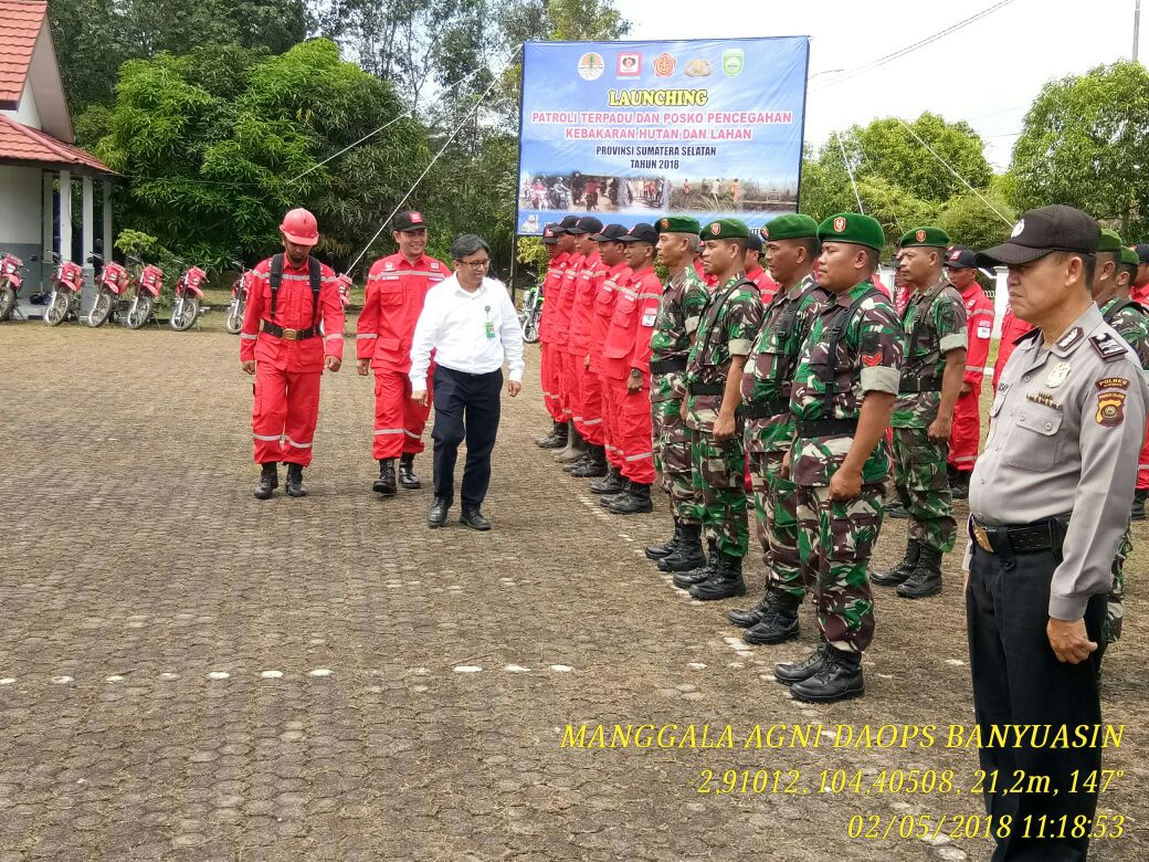 Launching pelaksanaan patroli terpadu di Provinsi Sumatera Selatan dilaksanakan secara serentak di empat Daops wilayah Sumatera Selatan, yaitu Daops Banyuasin, Musi Banyuasin, Ogan Komering Ilir (OKI), dan Daops Lahat. Apel keberangkatan tim patroli terpadu di Daops Banyuasin dipimpin Kepala Balai Pengendalian Perubahan Iklim Kebakaran Hutan dan Lahan (PPIKHL) wilayah Sumatera, Israr sekaligus melakukan pengecekan kelengkapan personil tim patroli terpadu.