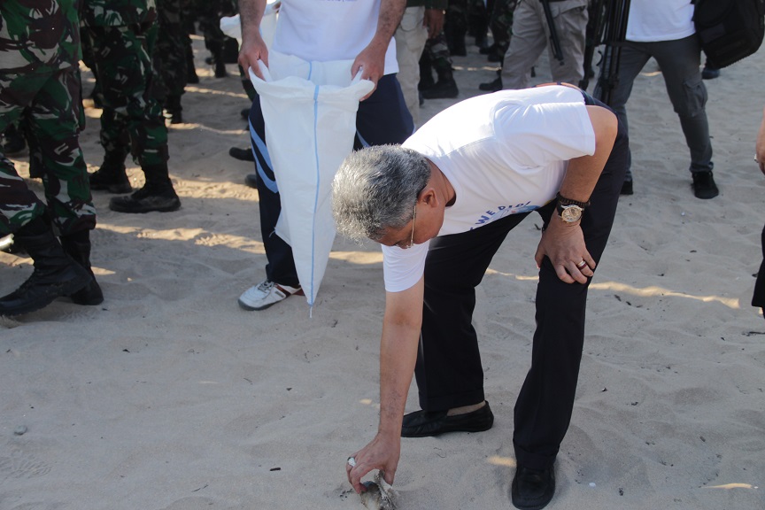 Kementerian LHK melakukan kegiatan Coastal Clean Up (CCU) atau Pembersihan Pesisir secara serentak di Bali, (11/5). CCU kali ini diselenggarakan di 7 (tujuh) lokasi Kabupaten/Kota di Provinsi Bali dengan kegiatan utama di Pantai Tanjung Benoa, Kabupaten Badung. Lokasi lain kegiatan CCU diselenggarakan di Pantai Tanjung Benoa - Kab. Badung; Pantai Masceti - Kab. Gianyar; Pantai Nyanyi - Kab. Tabanan; Pantai Penuktukan - Kab. Buleleng; Teluk Gilimanuk - Kab. Jembrana; Pantai Segara Kusamba, - Kab. Klungkung; dan Pantai Matahari Terbit, Pantai Biawung, Pantai Mertasari - Kota Denpasar.