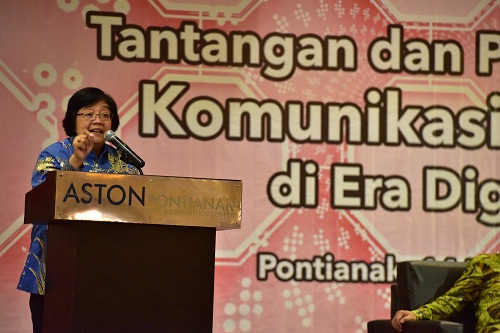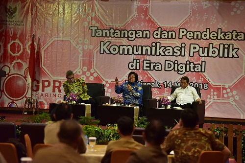 Acara Focus Group Discussion yang diselenggarakan Kementerian Komunikasi dan Informatika (Kominfo) di Pontianak (14/05/2018), mengangkat tema Tantangan dan Pendekatan Komunikasi Publik di Era Digital. Menghadirkan narasumber Menteri Lingkungan Hidup dan Kehutanan, Siti Nurbaya, Menteri Kominfo Rudi Antara, dan dengan moderator Johan Budi.
