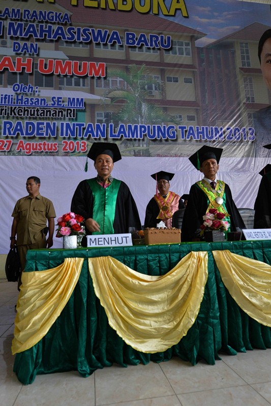 Pushumas Kemenhut, Bandar Lampung : Dalam Kunjungan Kerjanya ke Lampung Menteri Kehutanan Zulkifli Hasan memberikan kuliah umum dihadapan sekitar 2400 mahasiswa baru dan civitas akedemika IAIN Raden Intan Lampung. Selasa (27/08) di Bandar Lampung.