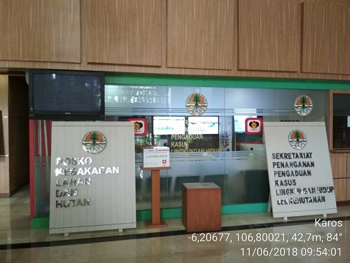 Jakarta, Kementerian Lingkungan Hidup dan Kehutanan (KLHK), Senin, 11 Juni 2018. Pemantauan titik api/hotspot dan kegiatan patroli terus dilakukan sepanjang libur lebaran. Di saat masyarakat pada umumnya telah memasuki masa libur, Manggala Agni tetap berkomitmen melaksanakan tugas. Menteri Lingkungan Hidup dan Kehutanan pun ikut bekerja mengarahkan dan memonitor kegiatan di lapangan.