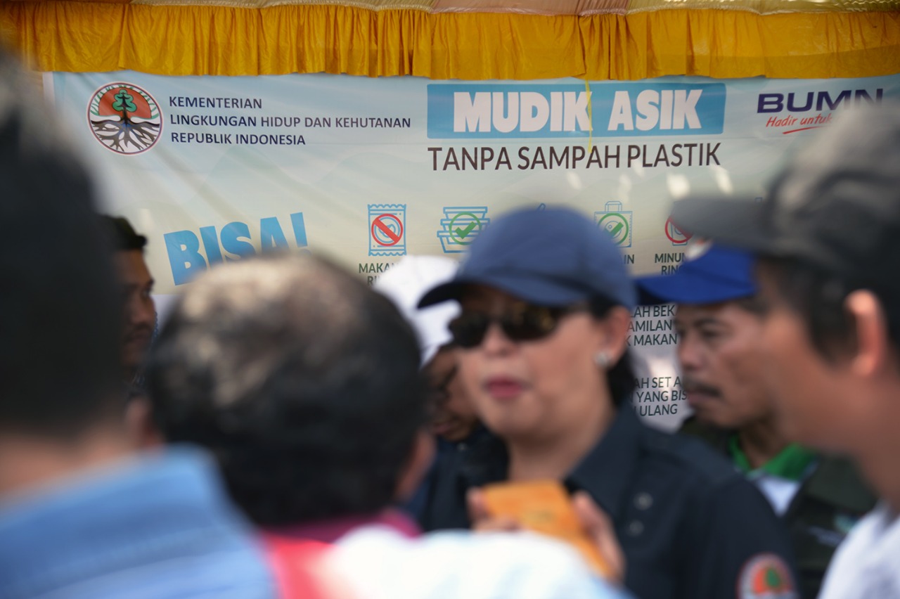 KLHK menginisiasi Program Mudik Asik Tanpa Sampah Plastik bertepatan dengan Hari Raya Idul Fitri 1439 H untuk mengantisipasi lonjakan timbulan sampah sepanjang arus mudik dan arus balik. Rosa Vivien Ratnawati, Direktur Jenderal Pengelolaan Sampah, Limbah dan Bahan Berbahaya Beracun (PSLB3) KLHK pada Sabtu (23/6/2018), melakukan monitoring penanganan sampah akibat arus balik libur Idul Fitri sekaligus melakukan edukasi pengelolaan sampah di titik pantau Rest Area km 101 ruas tol Cipali (Kabupaten Subang), Rest Area km 62 ruas tol Cikampek-Jakarta (Kabupaten Karawang).