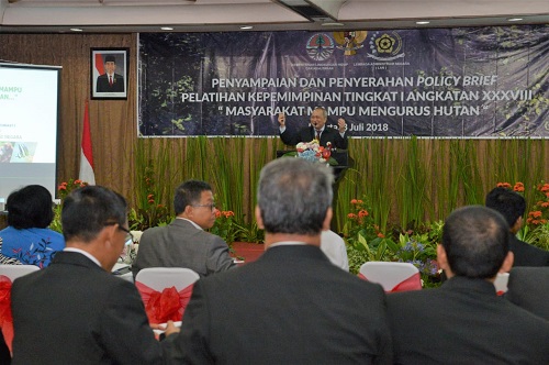 Peserta Pendidikan dan Pelatihan Kepemimpinan Tingkat I Angkatan XXXVIII Lembaga Administrasi Negara mengkaji dan merumuskan kebijakan pengelolaan hutan bersama masyarakat tersebut, dalam sebuah Policy Brief berjudul
