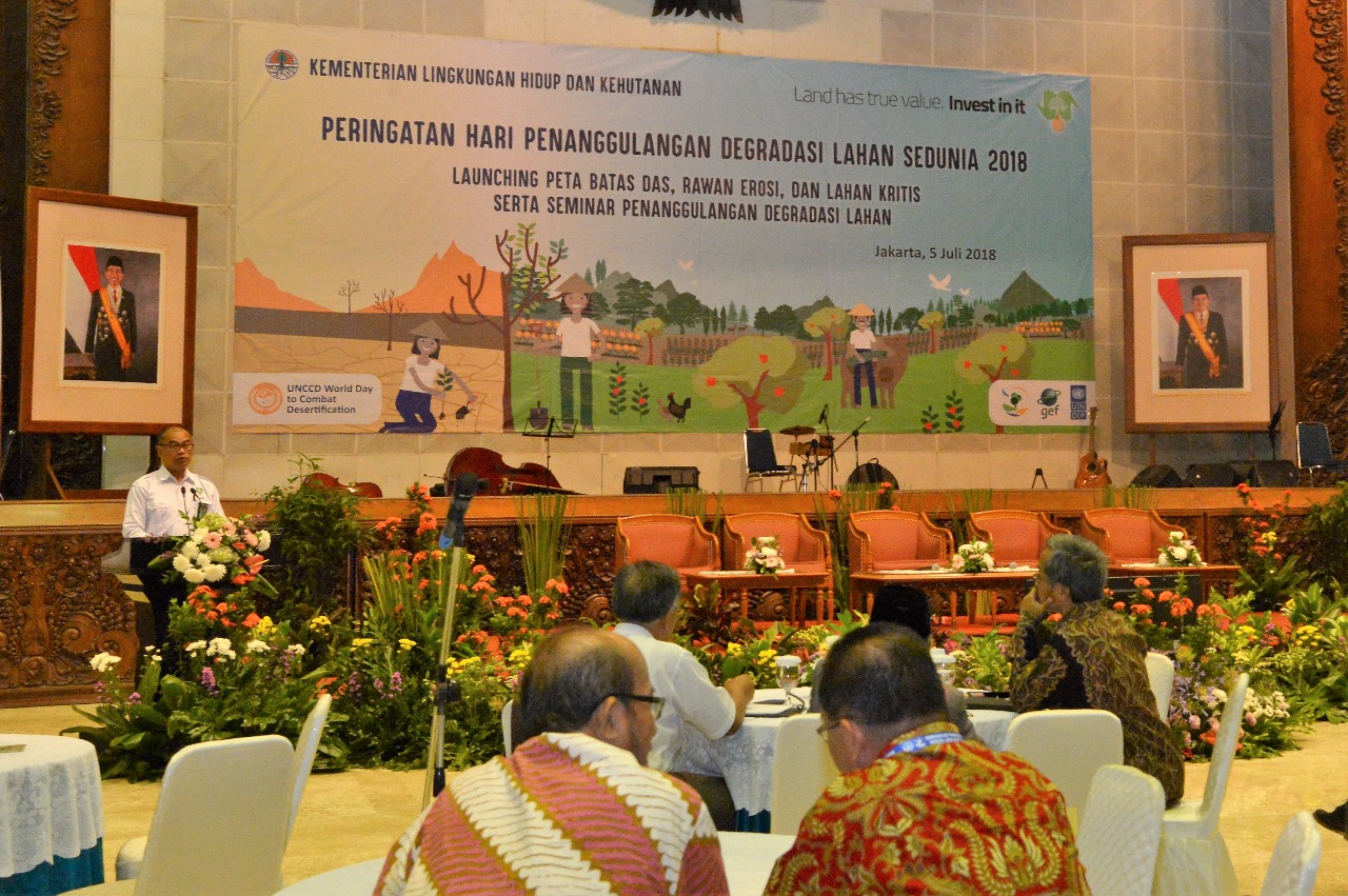 Pesan ini disampaikan oleh Direktur Jenderal Pengelolaan Daerah Aliran Sungai dan Hutan Lindung (PDASHL) KLHK, I.B. Putera Parthama. "Pendekatan lanskap mampu menilai keterkaitan komposit antar atribut secara tepat, terutama peran manusia sebagai pemanfaat sumberdaya, sekaligus driving force (pemicu) perubahan yang terjadi", tuturnya saat mewakili Menteri LHK, pada peringatan Hari Penanggulangan Degradasi Lahan Sedunia Tahun 2018, di Jakarta (05/07).