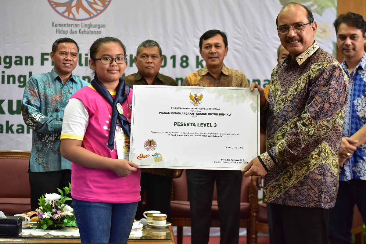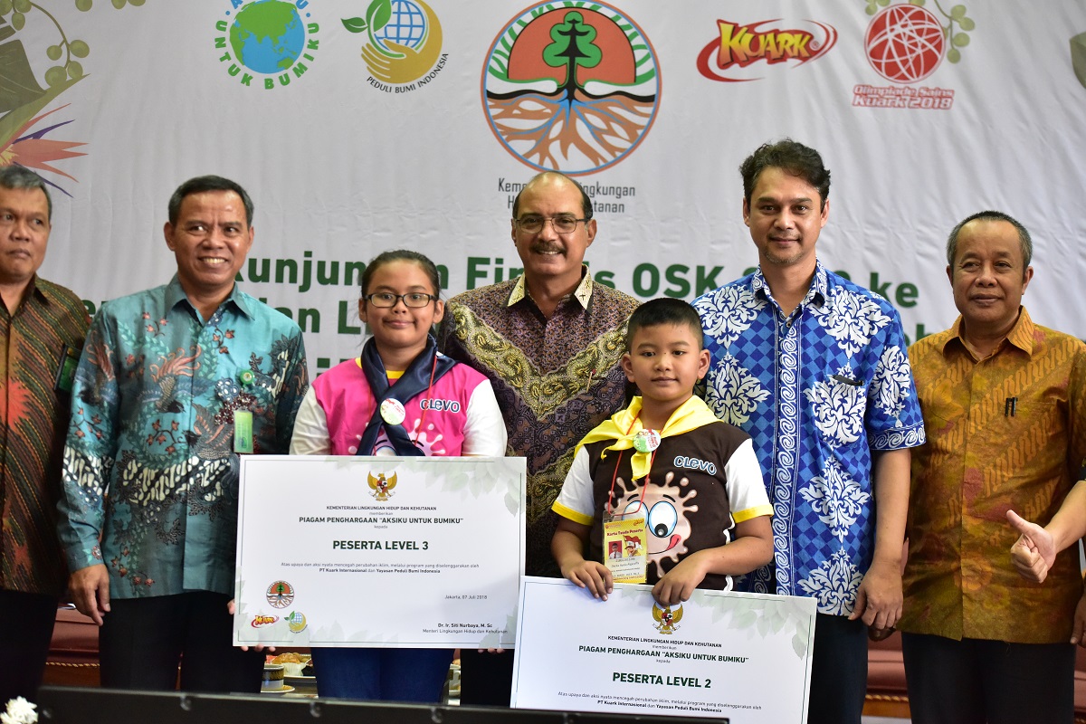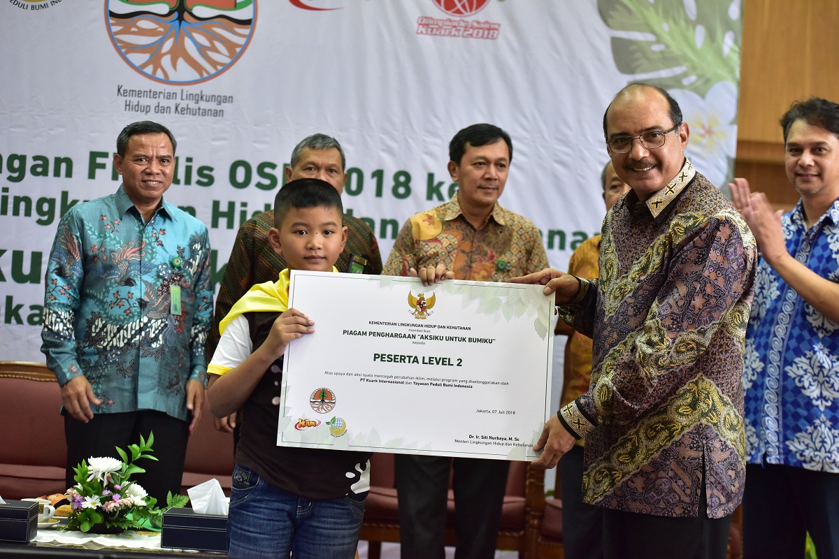 Menyadari pentingnya edukasi pengendalian perubahan iklim sejak dini, KLHK hadirkan 250 siswa sekolah dasar peserta Olimpiade Sains Kuark (OSK) Tahun 2018, untuk mempresentasikan hasil karya Mini Research Project terkait perubahan iklim.