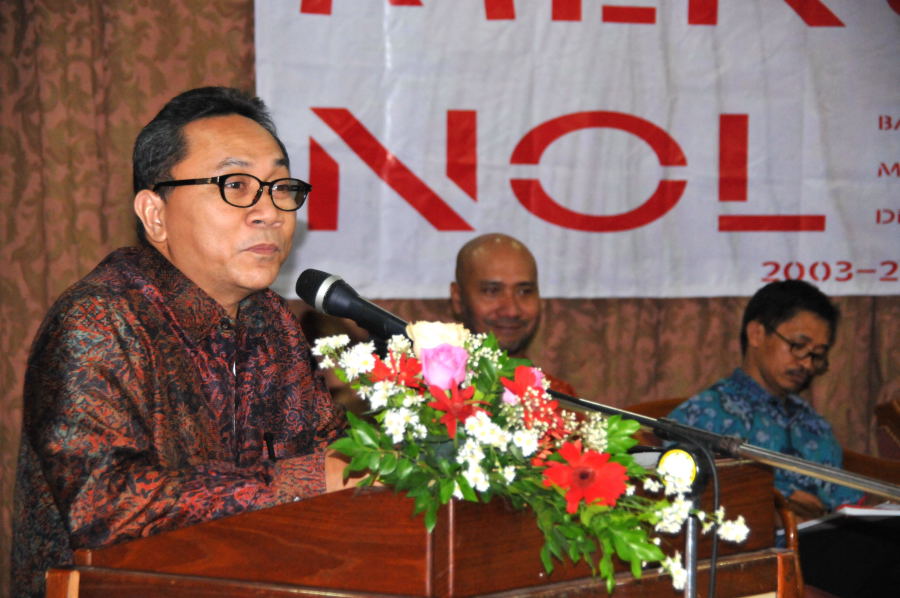 Pushumas Kemenhut , Jakarta : Menteri Kehutanan Zulkifli Hasan, memberikan sambutan sekaligus membuka acara Peluncuran Buku Menuju Nol Satu Dekade Kampanye Greenpeace Untuk Hutan Indonesia, Selasa (08/10) di Ruang Sonokeling, Gedung Manggala Wanabakti, Jakarta,