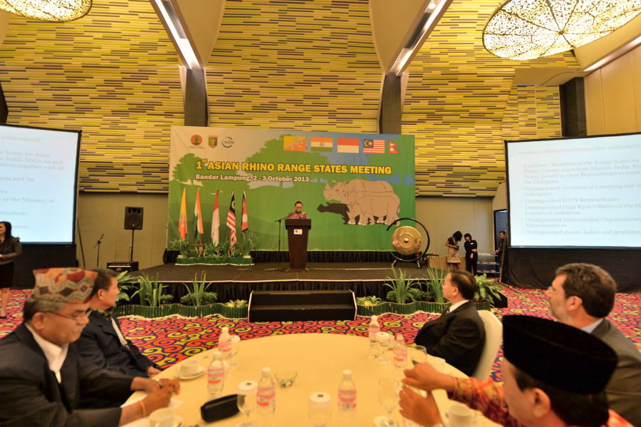 Pushumas Kemenhut, Bandar Lampung : Menteri Kehutanan Zulkifli Hasan membuka First Asian Rhino Range States Meeting, Rabu (2/10) di Novotel Bandar Lampung, seminar diselenggarakan tanggal 2-3 Oktober 2013, oleh Ditjen Perlindungan Hutan dan Konservasi Alam Kementerian Kehutananbersama International Union for Conservation of Nature(IUCN).Seminar diikuti sekitar 100 orang peserta dari berbagai utusan delegasi,tidak hanya dari negara sebaran badak Asia (Indonesia,Malaysia, Bhutan, India dan Nepal) tetapi juga para pakar dan pemerhati konservasi badak, NGOs dan private sektor dari dalam dan luar negeri (Germany,USA, UK, Thailand, France, Switzerland, Australia).Tujuan utama dari pertemuan ini antara lain adalah untuk koordinasi dan publikasi pentingnya upaya pelestarian badak di Asia, serta merumuskan komunike bersama yang dapat digunakan untuk menyemangati dan mendorong aktifitas pengelolaan badak di masing-masing range states. (FOTOPUSHUMAS/daus/arset)