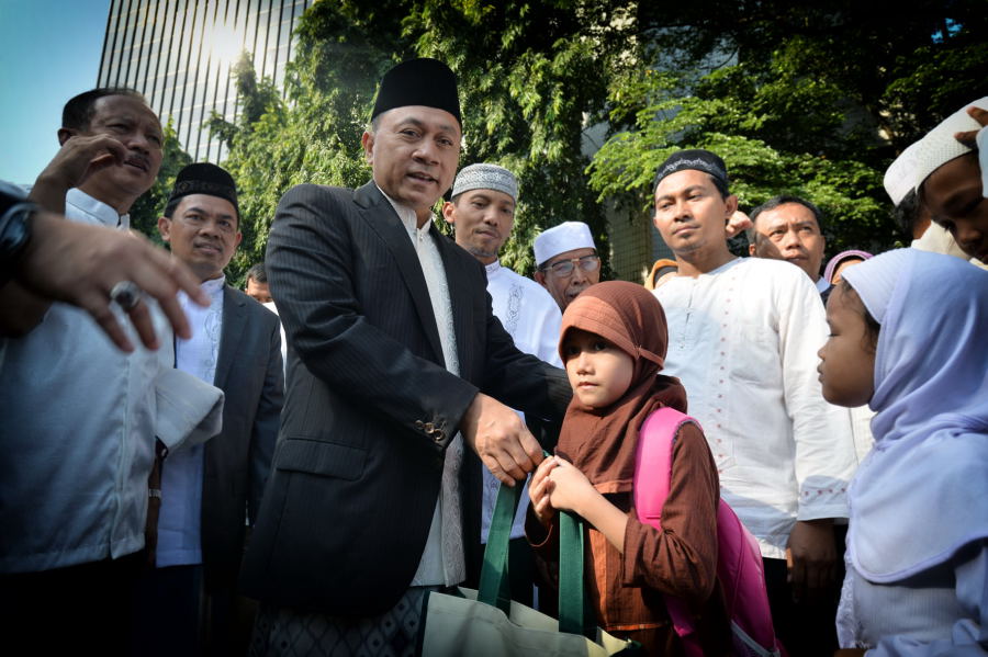 Pada kesempatan yang sama, Menhut juga memberikan santunan kepada sejumlah anak yatim seusai salat Idul Adha 1434H dilaksanakan. Tercatat pula, Infaq sebesar 120 jutakepada Dewan Keluarga Masjid Nurul Ajam, Manggala Wanabakti telah diserahkan oleh Menhut. (FOTOPUSHUMAS/idjan/idjan/arset)