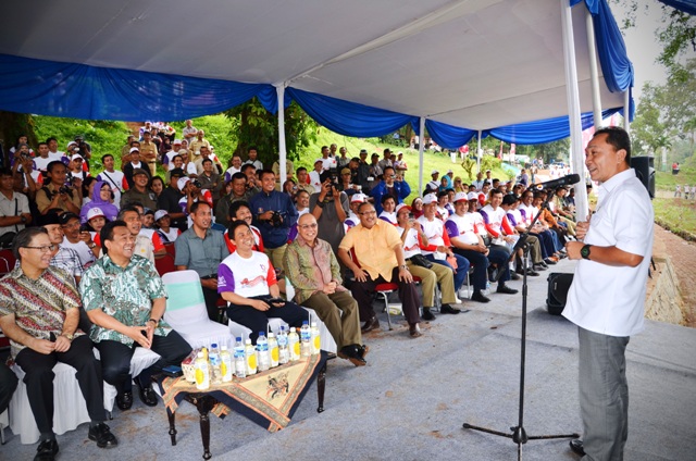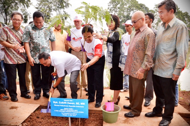Dalam sambutannya Menteri Kehutanan, mengajak kepada seluruh komponen masyarakat untuk gemar dan mencintai menanam pohon guna menjaga kelestarian alam dan menciptakan lingkungan yang lebih baik dimasa yang akan datang.