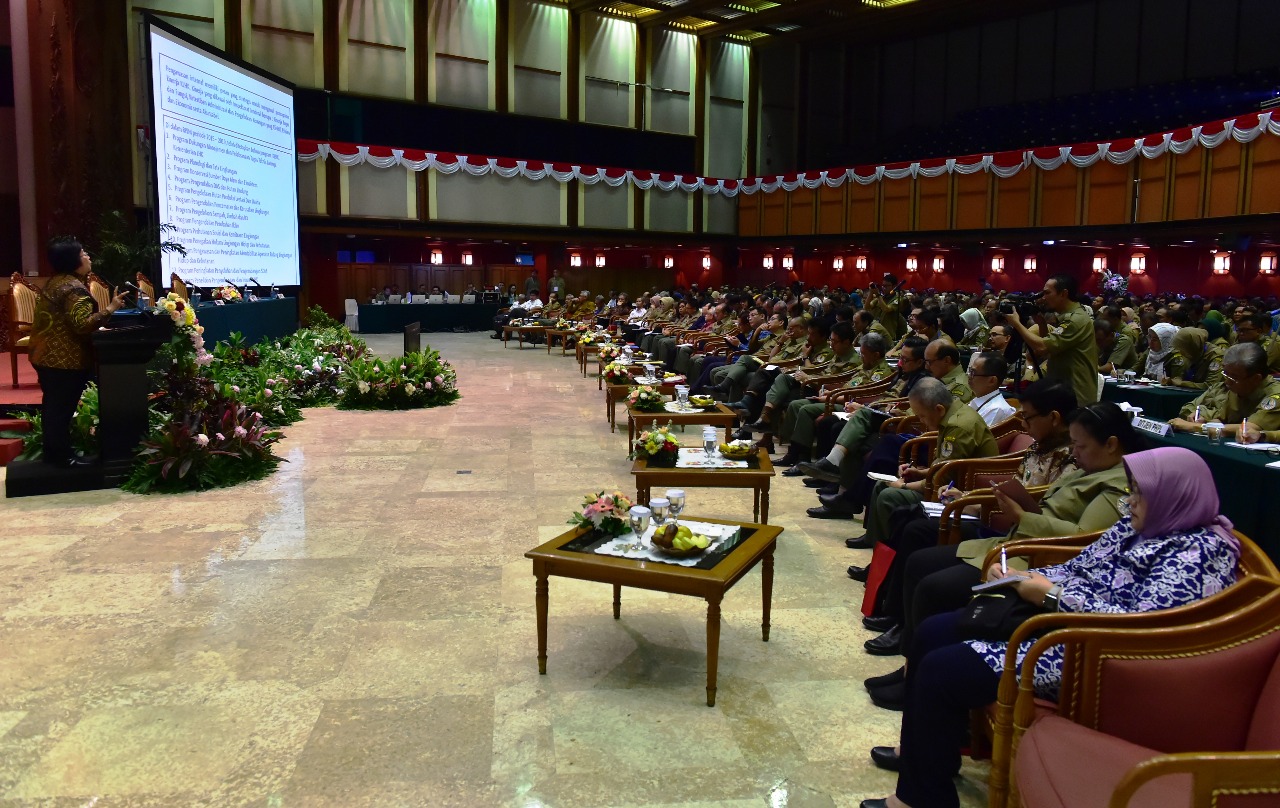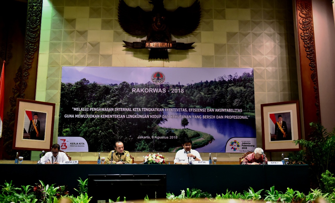 Jakarta, Kementerian Lingkungan Hidup dan Kehutanan (KLHK), Senin, 6 Agustus 2018. Menteri LHK, Siti Nurbaya meminta birokrat KLHK paham bahwa dalam menyelesaikan program kerja tidak hanya berpatokan pada keberhasilan mencapai target secara teknis semata, namun harus memperhatikan ketercapaian sasaran secara politis yaitu memenuhi keinginan masyarakat. Hal ini diungkapkan Menteri LHK, Siti Nurbaya pada Rapat Koordinasi Pengawasan (Rakorwas) Tahun 2018 yang diselenggarakan di Auditorium Dr. Soedjarwo Kantor Pusat KLHK, Jakarta (6/8).