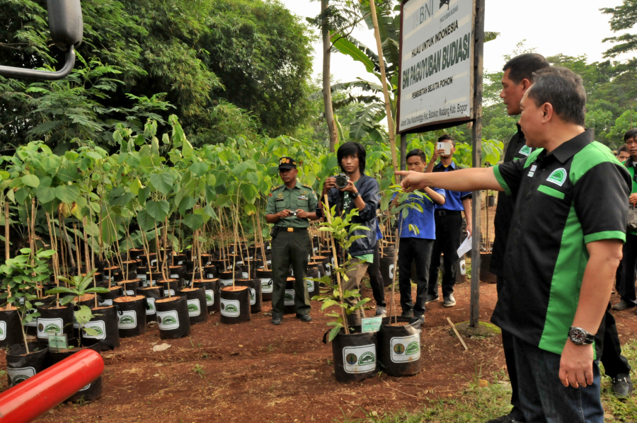 Pembibitan Paguyuban Budiasi menyediakan bibit pohon bekerjasama dengan TNI dan masyarakat sekitar lokasi pembibitan. (FOTOPUSHUMAS/Daus/arset)