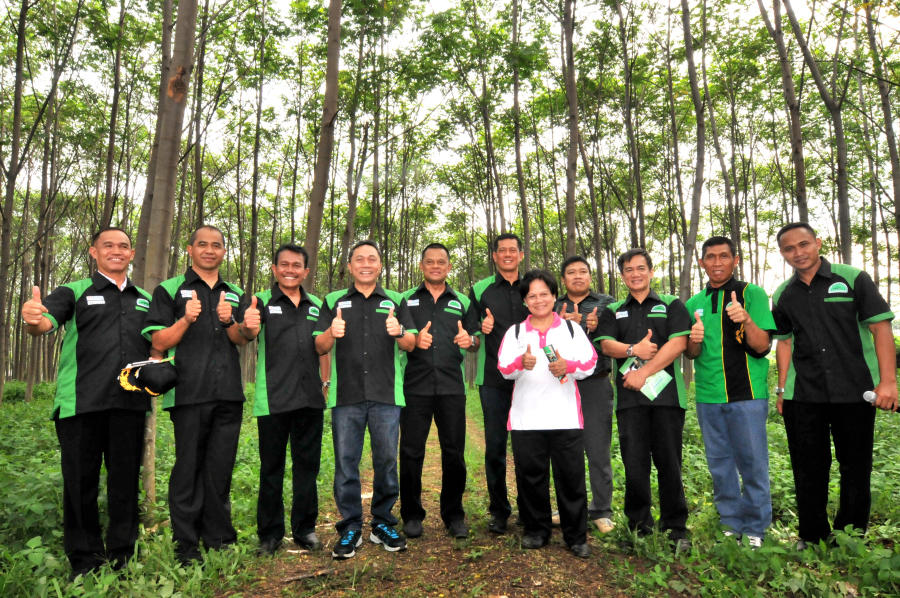 Foto 5. Menteri Kehutanan Zulkifli Hasan, Erna Witular, Mayjen TNI Doni Monardo dan beberapa perwira tinggi TNI berfoto bersama di areal kebun Jati Putih/Gmelina milik Paguyuban Budiasi