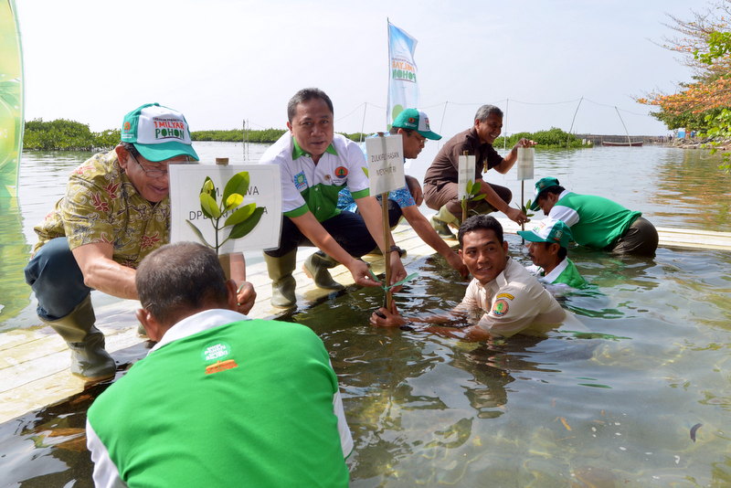 3. Menhut melakukan penanaman Mangrove di pantai Pulau Pramuka.