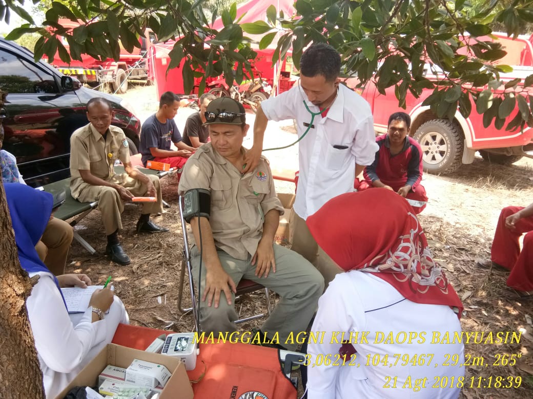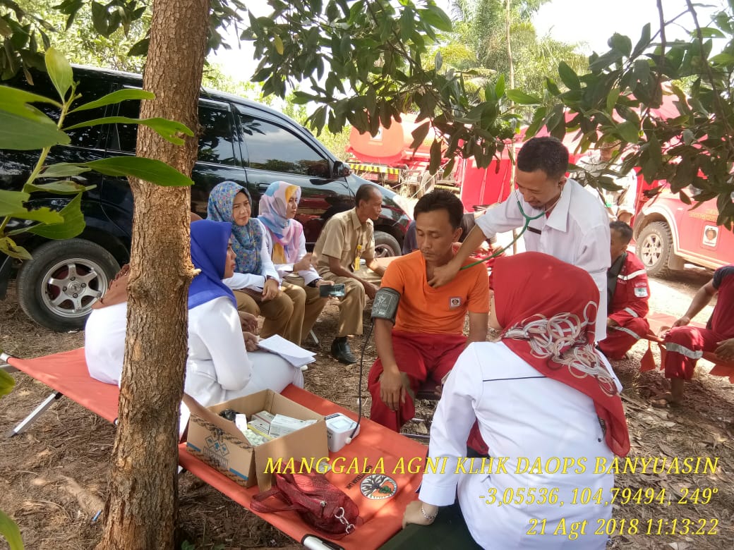 Pemeriksaan kesehatan kepada personil Manggala Agni yang bertugas di lapangan ini merupakan salah satu bentuk kerjasama para pihak dalam Satgas Penanggulangan Karhutla Provinsi Sumatera Selatan. Melalui kerjasama dengan Dinas Kesehatan Provinsi Sumatera Selatan dan Dinas Kesehatan Kabupaten Ogan Ilir kegiatan ini dilakukan.