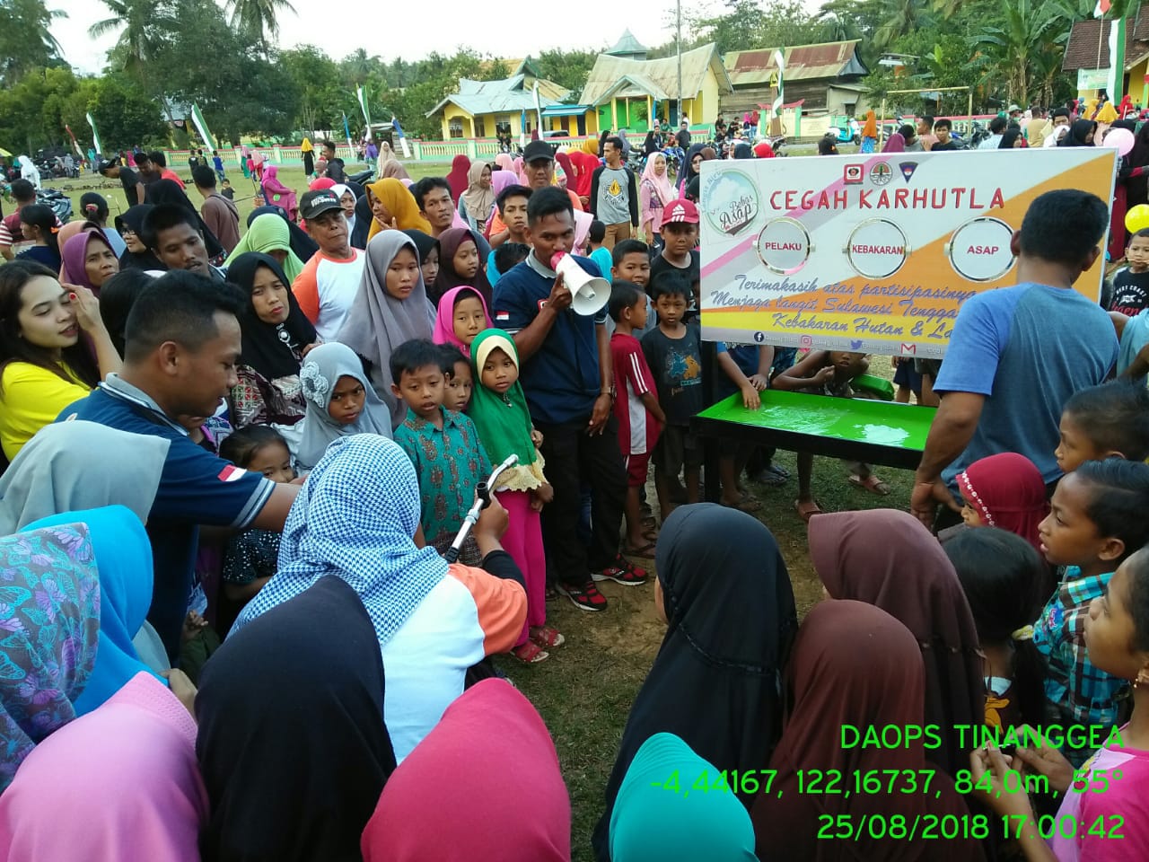 Upaya pencegahan kebakaran hutan dan lahan (karhutla) terus digalakkan KLHK melalui berbagai aksi lapangan. Kali ini KLHK mengajak masyarakat mencegah karhutla melalui kampanye pencegahan karhutla, yang dilaksanakan di lapangan Desa Telutu Jaya Kecamatan Tinanggea, Kabupaten Konawe Selatan, Provinsi Sulawesi Tenggara (25/08/2018).