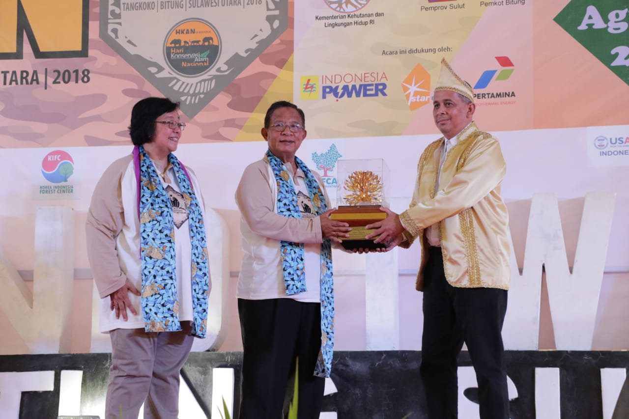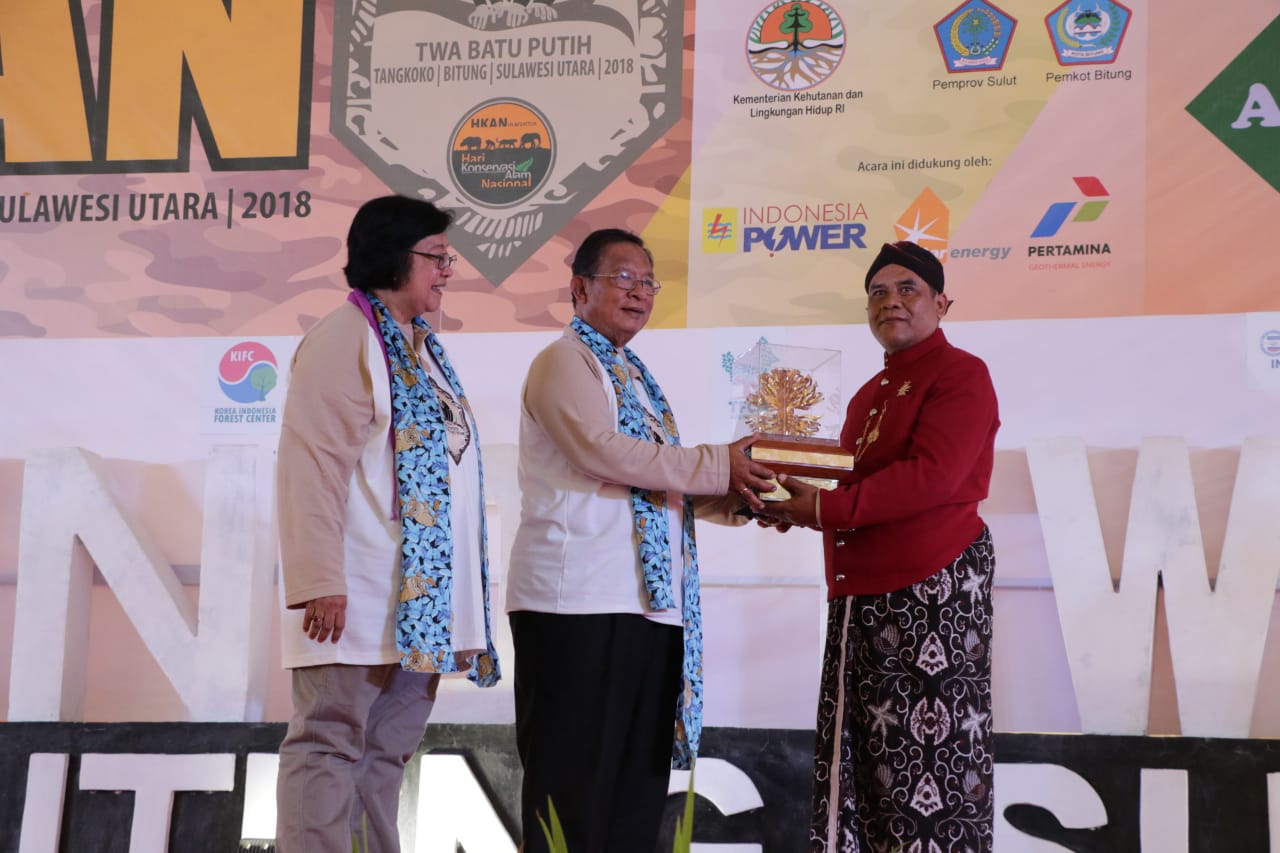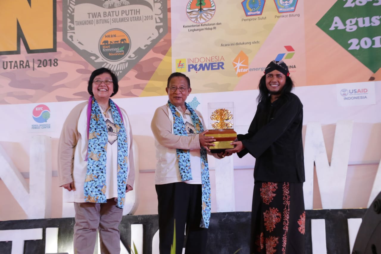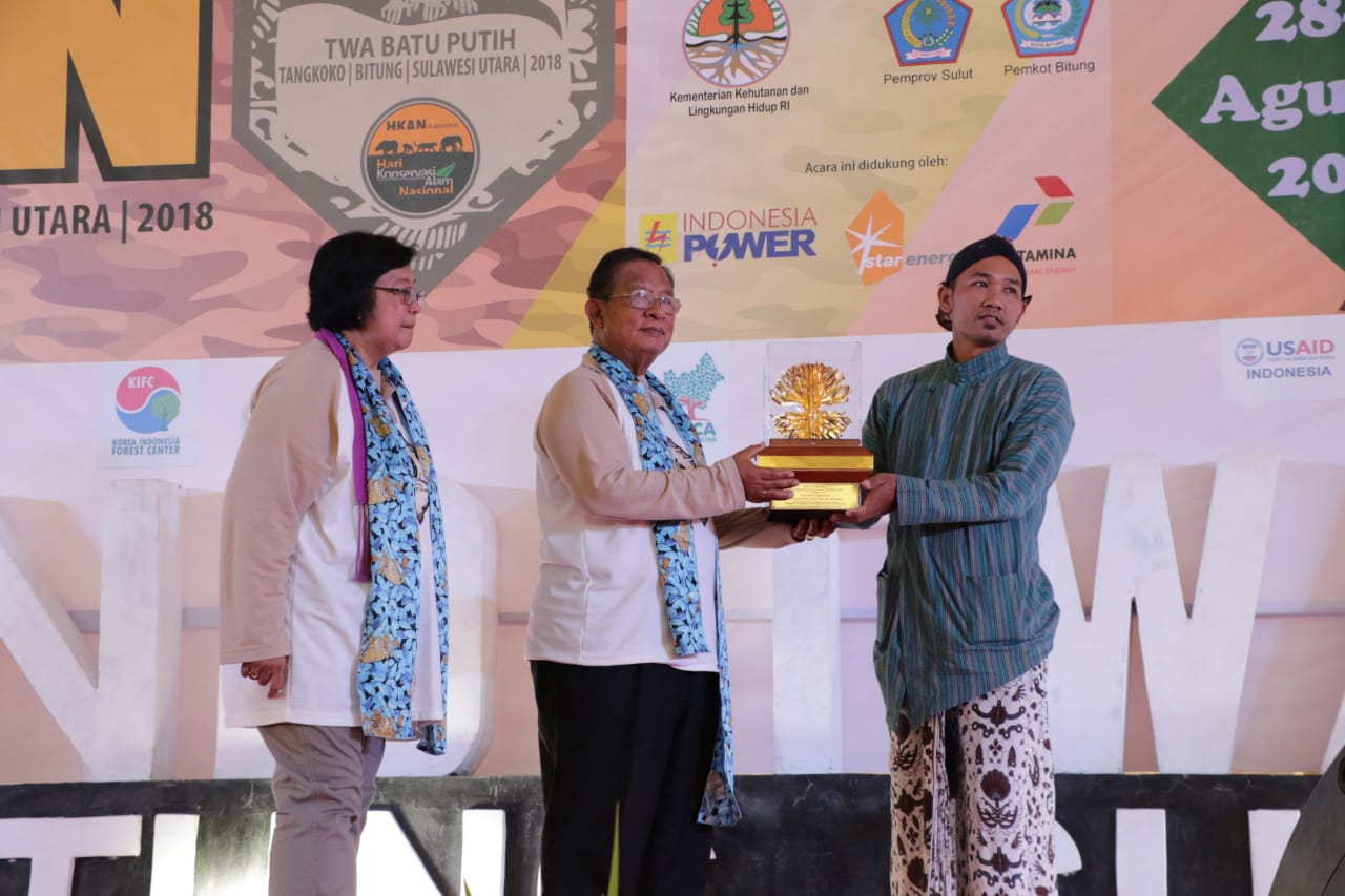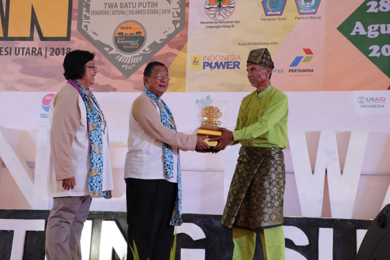 Anugerah Kalpataru tahun 2018 diserahkan oleh Menteri Koordinator Bidang Perekonomian Darmin Nasution dan Menteri LHK Siti Nurbaya dalam puncak acara Peringatan Hari Konservasi Alam Nasional (HKAN) di TWA Batu Putih, Kota Bitung, Sulawesi Utara pada tanggal 30 Agustus 2018.