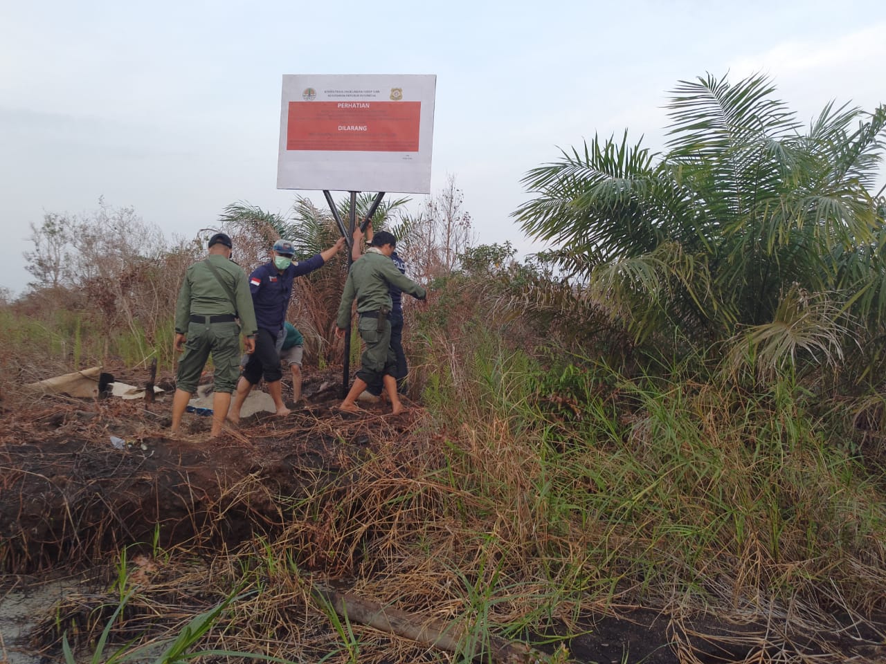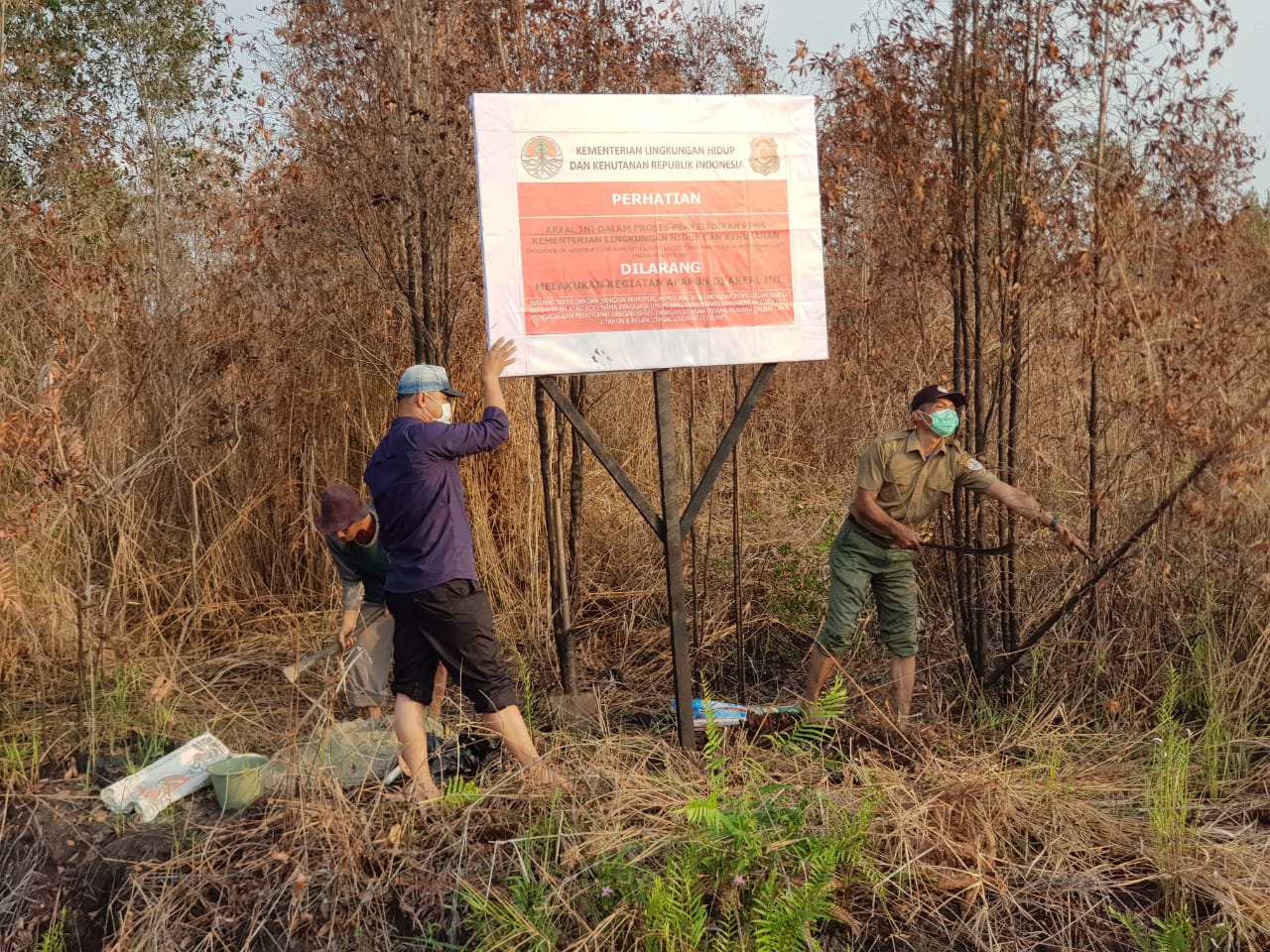 Jakarta, Kementerian Lingkungan Hidup dan Kehutanan (KLHK), Kamis, 20 September 2018. Tim Direktorat Jenderal Penegakkan Hukum (Gakkum) LHK, didukung Balai Taman Nasional (BTN) Gunung Palung dan Brigade Manggala Agni, kembali menyegel areal bekas terbakar di dalam lahan konsesi perusahaan di Kabupaten Kubu Raya dan Kabupaten Ketapang, Kalimantan Barat, pada Senin 17 September 2018.
