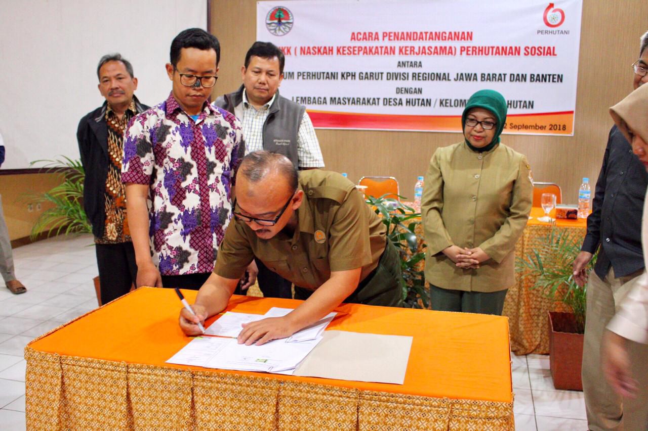 Dalam rangka percepatan program Perhutanan Sosial, KLHK terjun langsung ke lapangan untuk mendukung usulan program Perhutanan Sosial. Sebagaimana yang dilakukan Direktur Jenderal Perhutanan Sosial dan Kemitraan Lingkungan (PSKL), Bambang Supriyanto, saat menyaksikan penandatanganan Naskah Kesepakatan Kerjasama (NKK), di wilayah kerja Kabupaten Garut dan Kabupaten Bandung Selatan, Provinsi Jawa Barat (22/09).