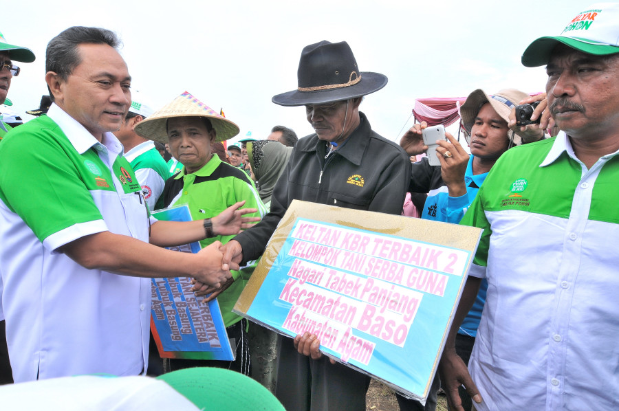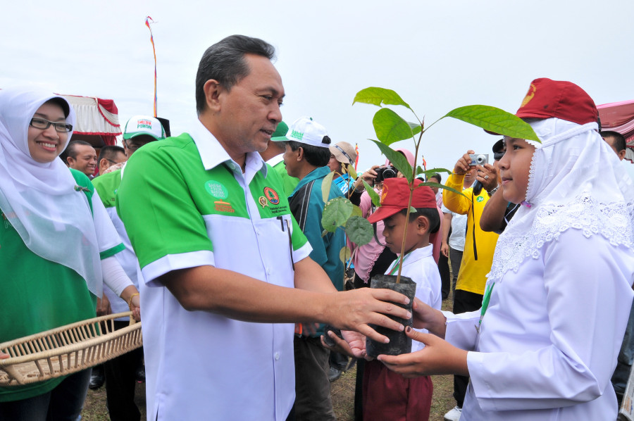 Selain menanam pohon, Menteri Kehutanan juga menyerahkan SK Hutan Tanaman Rakyat dan SK Hutan Kemasyarakatan untuk Kabupaten/Kota di Sumbar yang diterima pimpinan daerah masing-masing. (FOTOPUSHUMAS/daus/arset)