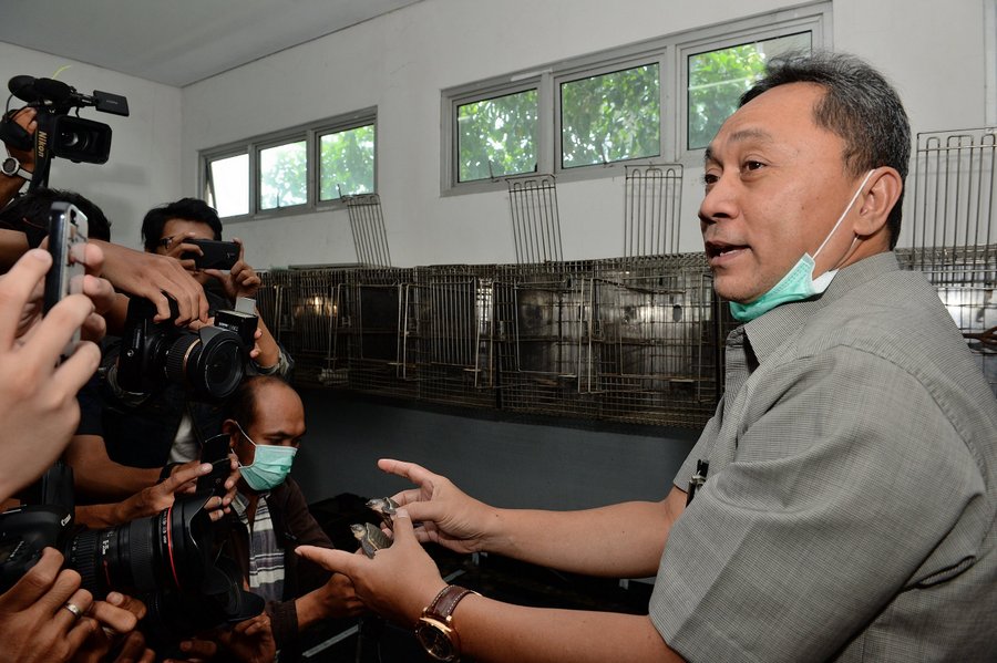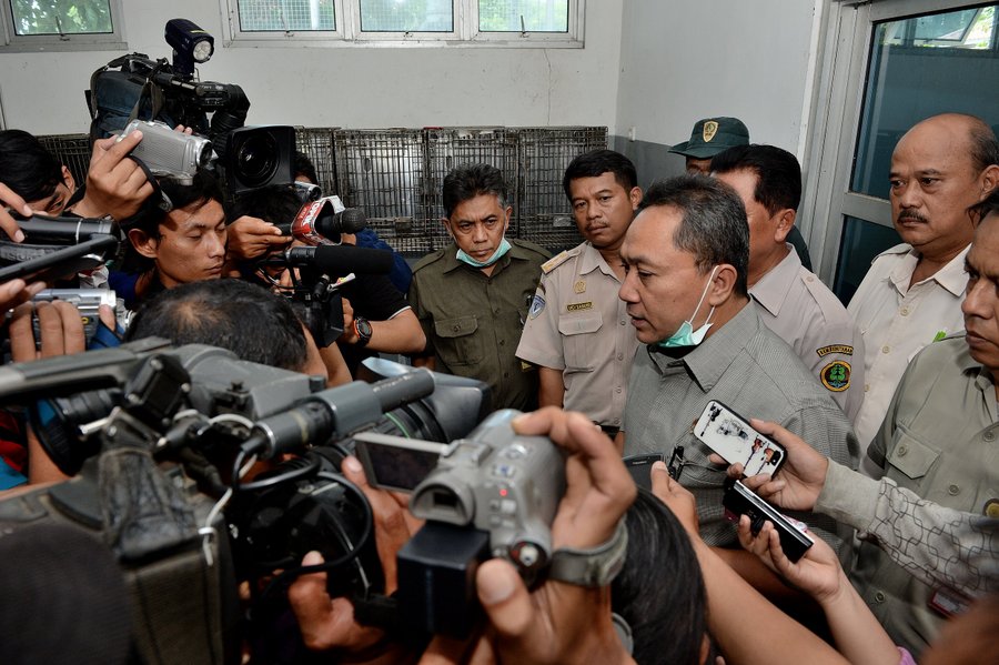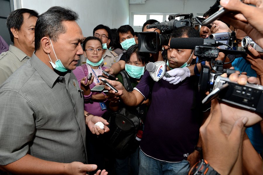 Foto 10 & 11 : Menhut Zulkifli Hasan sedang memberi keterangan pers kepada wartawan media cetak dan elektronik tentang penyelundupan kura-kura moncong babi di Instalasi Karantina Hewan Balai Besar Karantina Pertanian Soekarno Hatta.