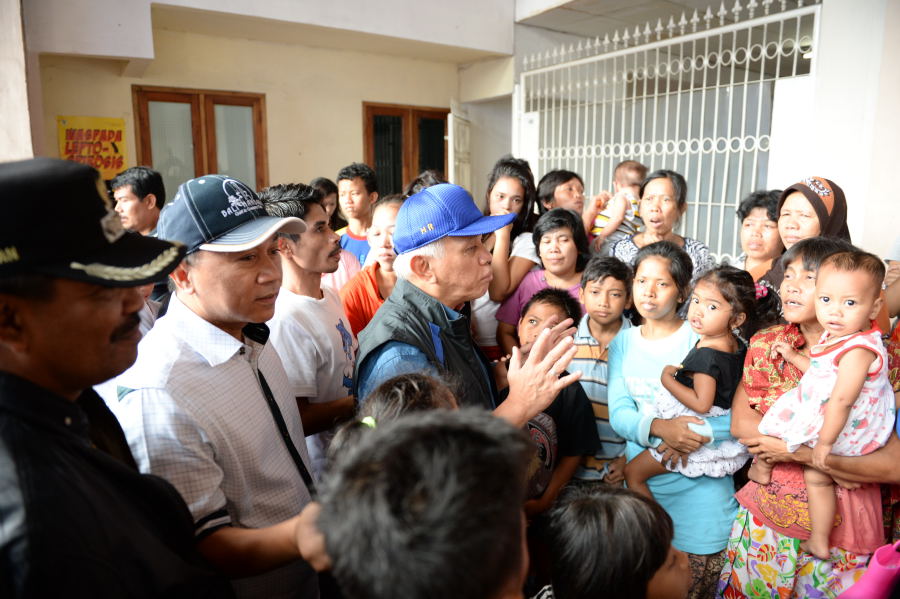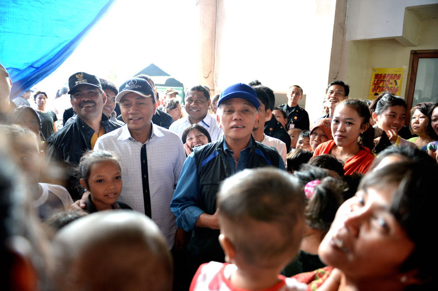Dalam kunjungannya, Hatta Radjasa dan Zulkifli Hasan menyempatkan diri untuk berdialog dengan warga yang rumahnya terendam banjir. Warga menyambut hangat kedatangan kedua pejabat ini dan mengharapkan ada penanganan yang lebih serius dari semua pihak agar bencana banjir tidak terjadi setiap kali hujan turun seperti saat sekarang ini. (FOTOPUSHUMAS/daus)