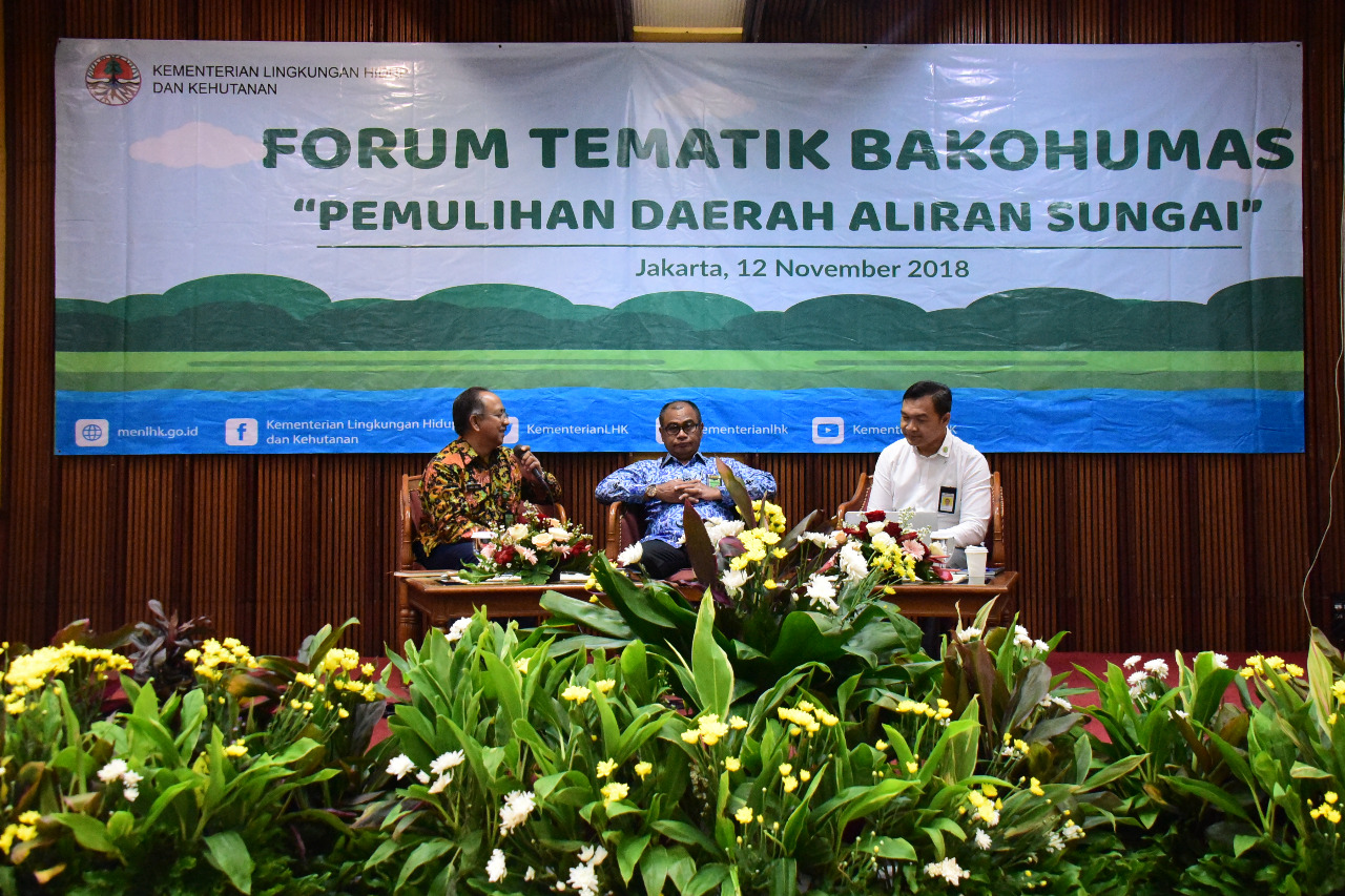 Jakarta, Kementerian Lingkungan Hidup dan Kehutanan (KLHK), Senin, 12 November 2018. KLHK sedang menyiapkan master plan pemulihan Daerah Aliran Sungai (DAS) yang antara lain berintikan Rehabilitasi Hutan dan Lahan (RHL) dari 2020-2030 dengan target pada 2030 semua lahan kritis sudah terrehabilitasi. Upaya ini perlu dukungan pendanaan sekitar 200 Triliun. Hal ini mengemuka pada Forum Tematik Badan Koordinasi Kehumasan (Bakohumas) dengan tema "Pemulihan Daerah Aliran Sungai" yang diselenggarakan oleh KLHK di Jakarta (12/11).
