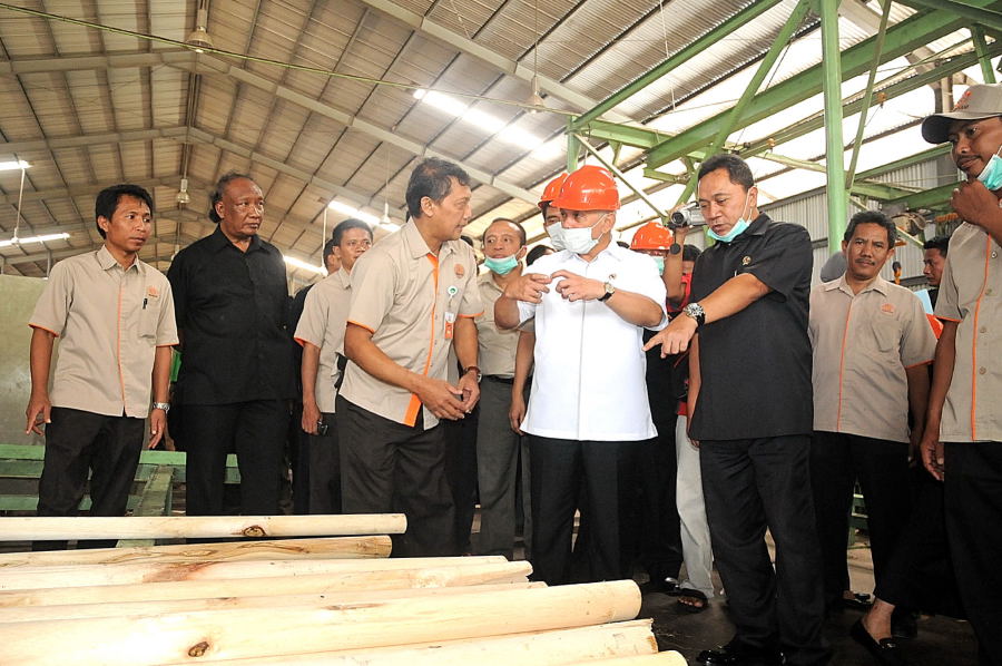 Menhut dan Menko Perekonomian Tinjau Pabrik Kayu Lapis Perhutani
