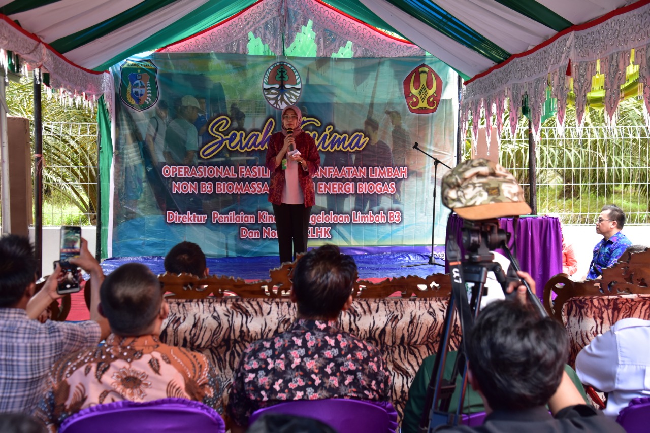 KLHK menyerahkan Fasilitas Pemanfaatan Limbah Biomassa sebagai Energi bagi masyarakat Kabupaten Pasangkayu, Provinsi Sulawesi Barat, (15/12/2018). Fasilitas ini menyajikan teknologi pemanfaatan limbah dari cangkang sawit serta menyediakan kumbung jamur.