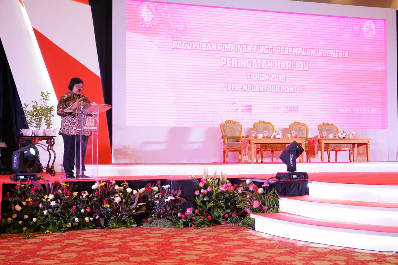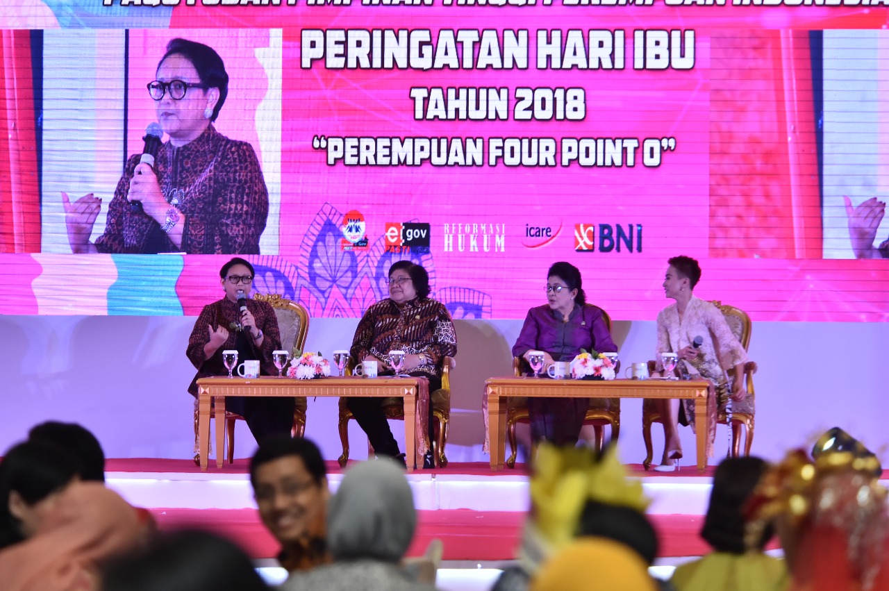 Paguyuban Pimpinan Tinggi Perempuan Indonesia, menyelenggarakan Peringatan Hari Ibu tahun 2018 di Balai Kartini, Jakarta (18/12). Menteri LHK, Siti Nurbaya hadir mewakili Ibu Negara, Iriana Joko Widodo pada acara ini. Peringatan Hari Ibu yang diselenggarakan, mengambil tema Perempuan Four Point O (4.0).