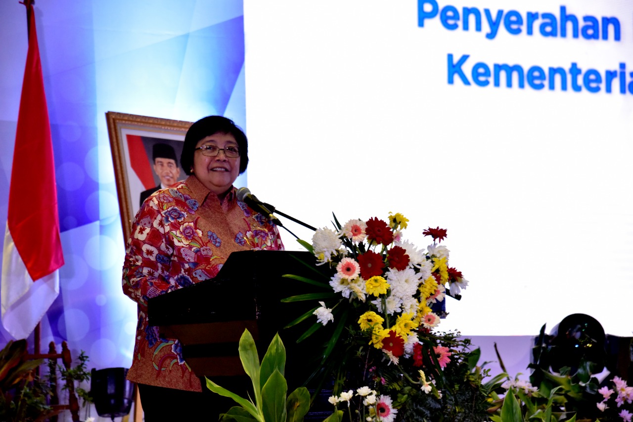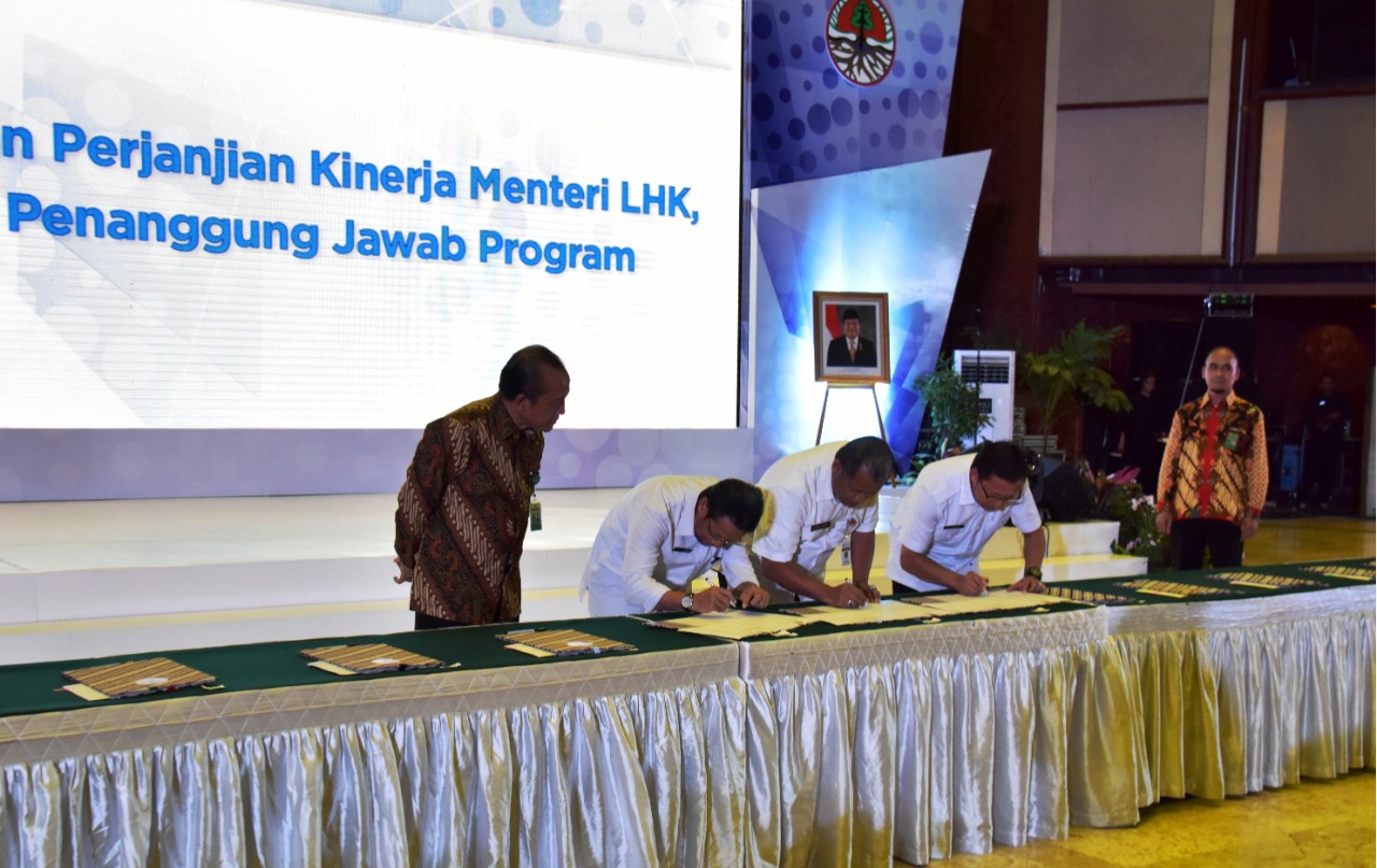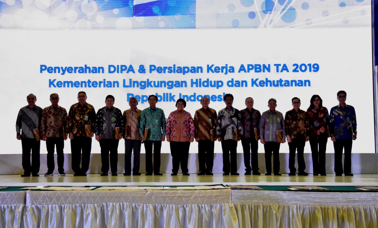 Menteri LHK Siti Nurbaya menyerahkan Daftar Isian Pelaksanaan Anggaran (DIPA) tahun anggaran 2019 kepada 13 Pimpinan Eselon I yang berada di lingkungan KLHK, di Jakarta, (20/12). Total kekuatan fiskal anggaran Kementerian LHK untuk Tahun Anggaran 2019, mencapai lebih dari Rp. 9 Triliun, meningkat dari tahun sebelumnya yang hanya sebesar lebih kurang Rp. 7 triliun.