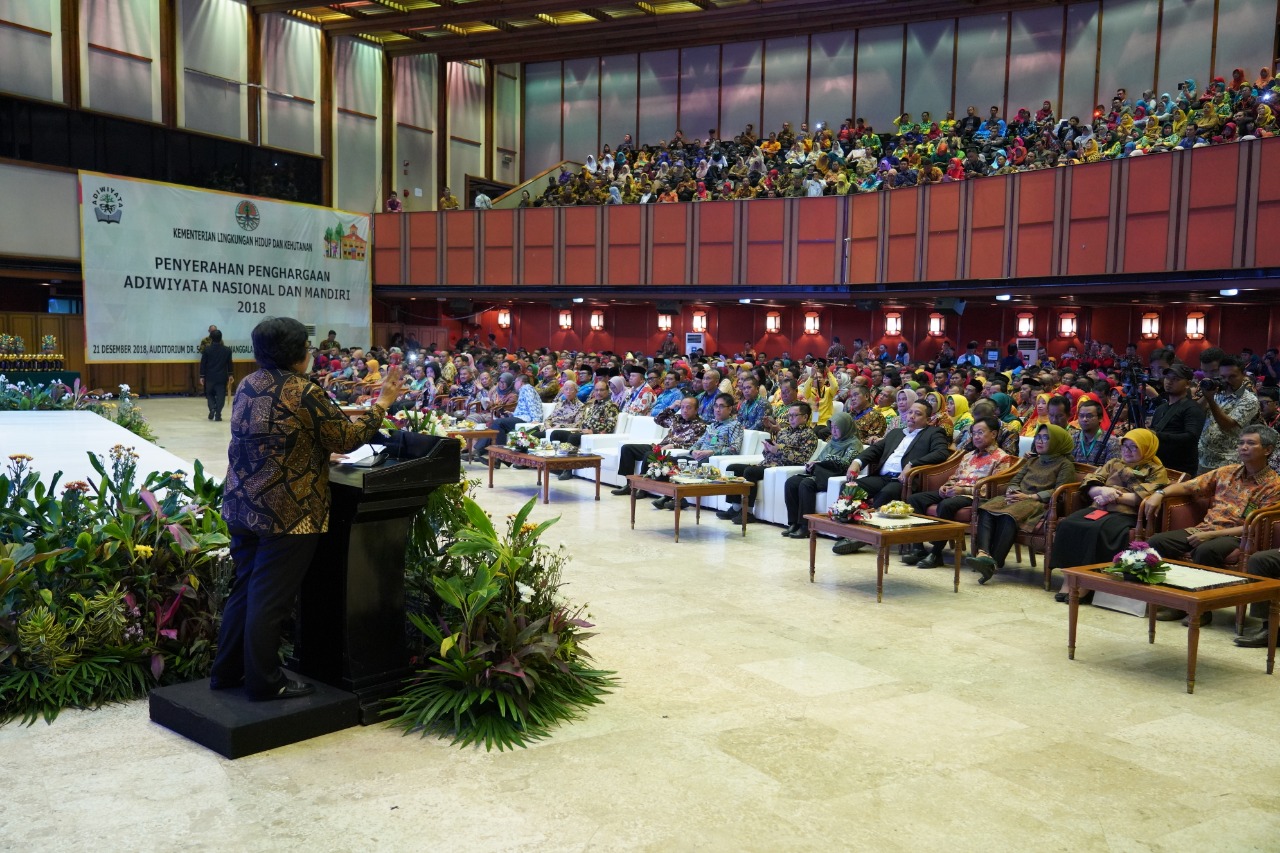 Menteri LHK, Siti Nurbaya yang hadir dalam penyerahan penghargaan ini di Jakarta (21/12), mengharapkan agar Adiwiyata ini menjadi gerakan nasional yang dapat membangkitkan sekolah dan madrasah di Indonesia.