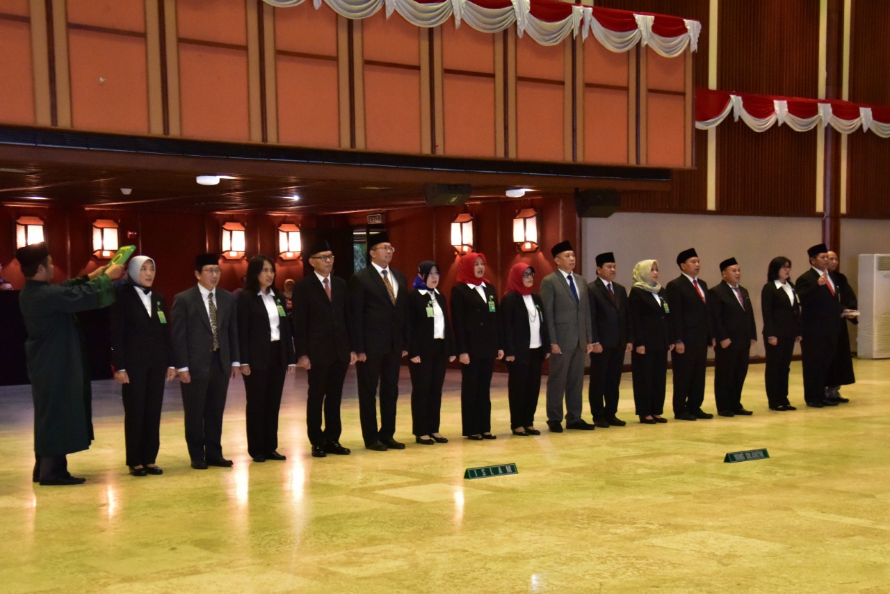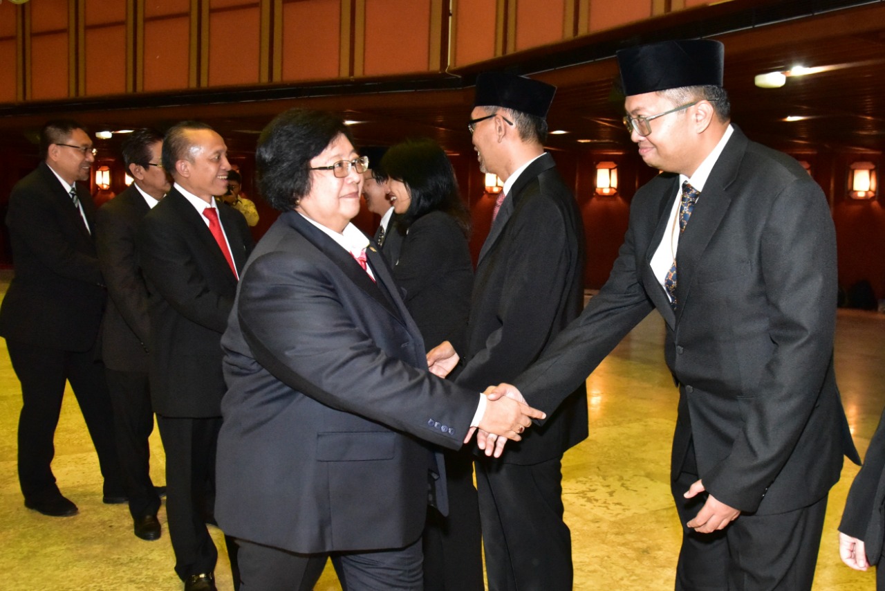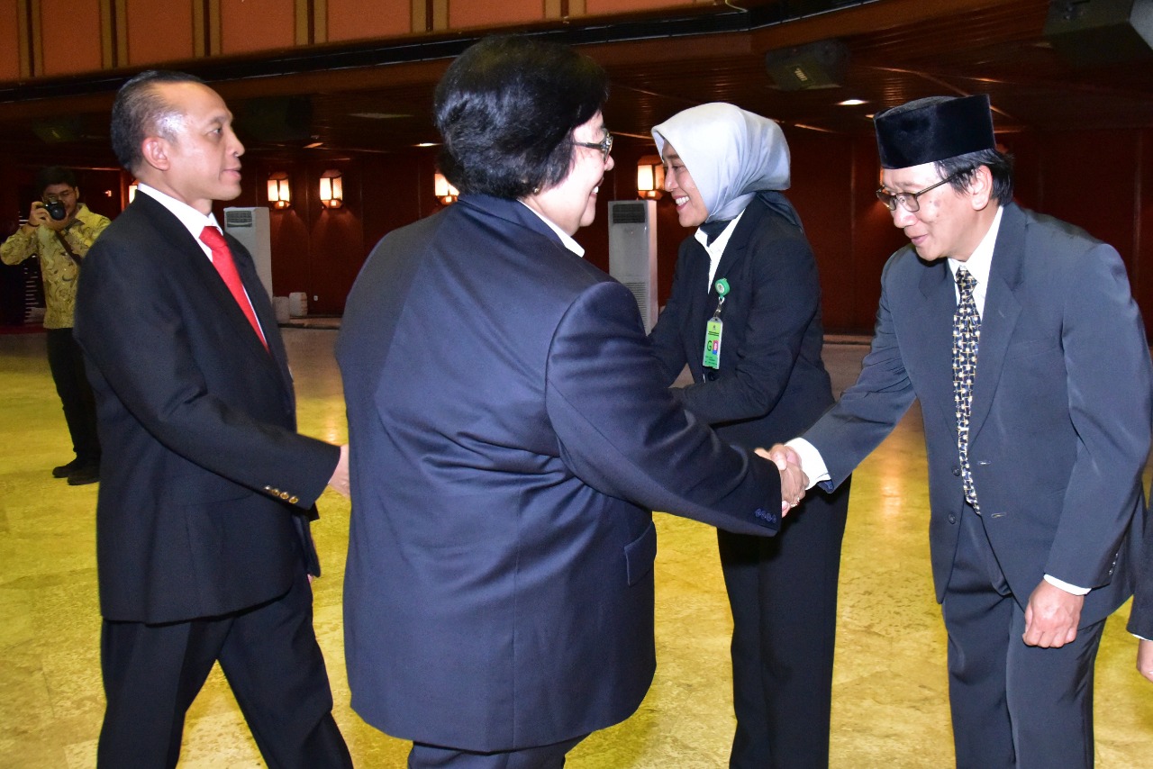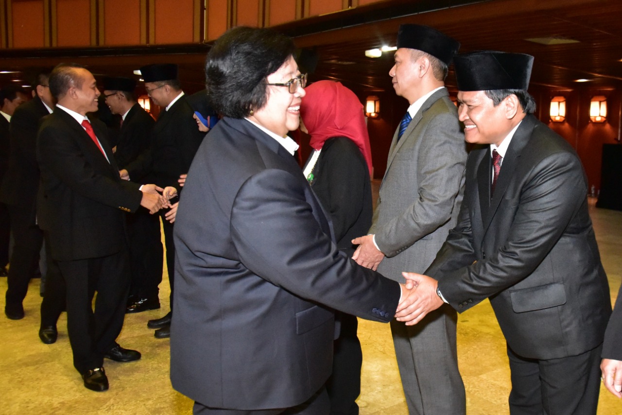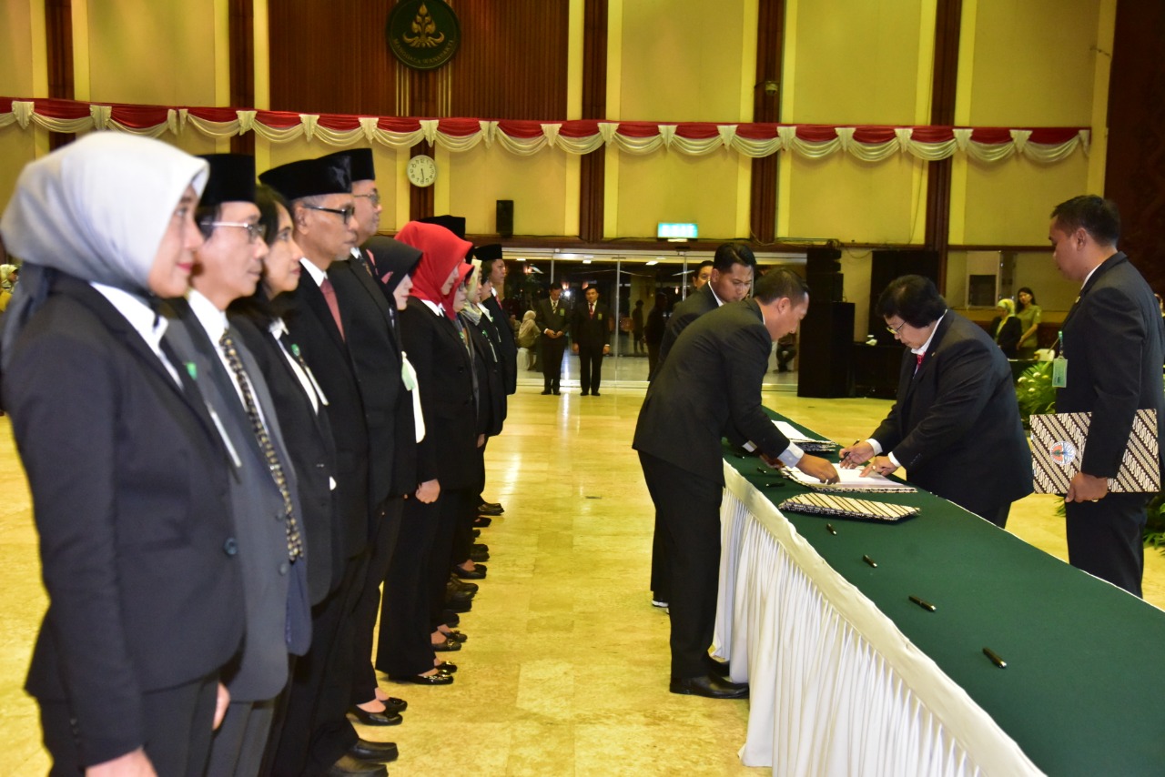 Jakarta, Kementerian Lingkungan Hidup dan Kehutanan (KLHK), Senin, 31 Desember 2018. Di penghujung tahun 2018, Menteri Lingkungan Hidup dan Kehutanan Siti Nurbaya melantik 15 Pejabat Pimpinan Tinggi Pratama (Eselon II) lingkup KLHK pada Senin, (31/12/2018) di Jakarta. Pada pelantikan kali ini, komposisi pejabat eselon II perempuan sebanyak 7 orang atau lebih banyak dari pelantikan sebelumnya.