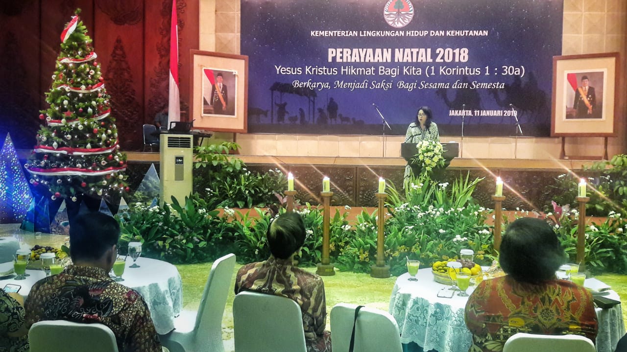 Peringatan Natal 2018 ini mengambil Tema "Yesus Kristus Hikmat Bagi Kita (1 Korintus 1 : 30a) dengan Subtema "Berkarya, Menjadi Saksi Bagi Sesama dan Semesta". Menteri LHK, Siti Nurbaya hadir dan ikut berbahagia dengan para karyawan-karyawati Kristiani KLHK yang sedang merayakan Natal.