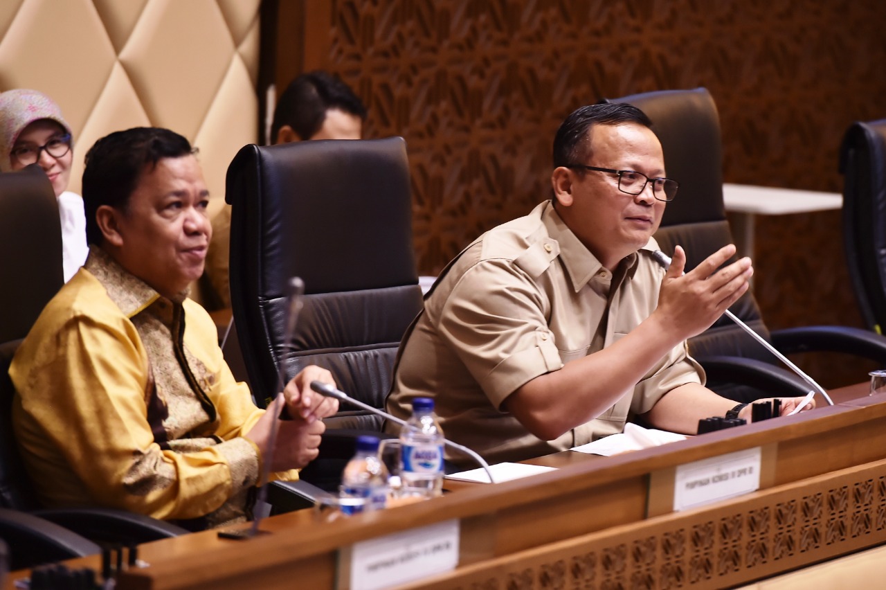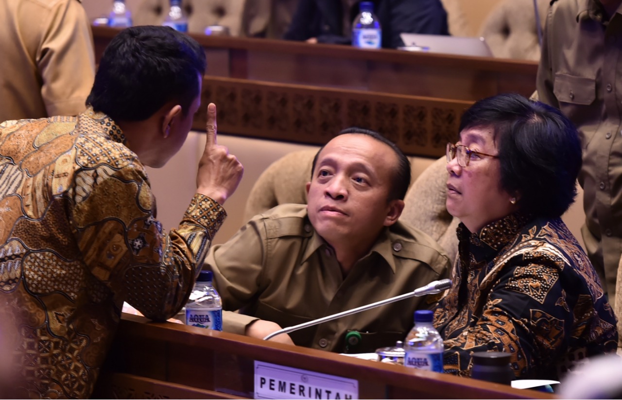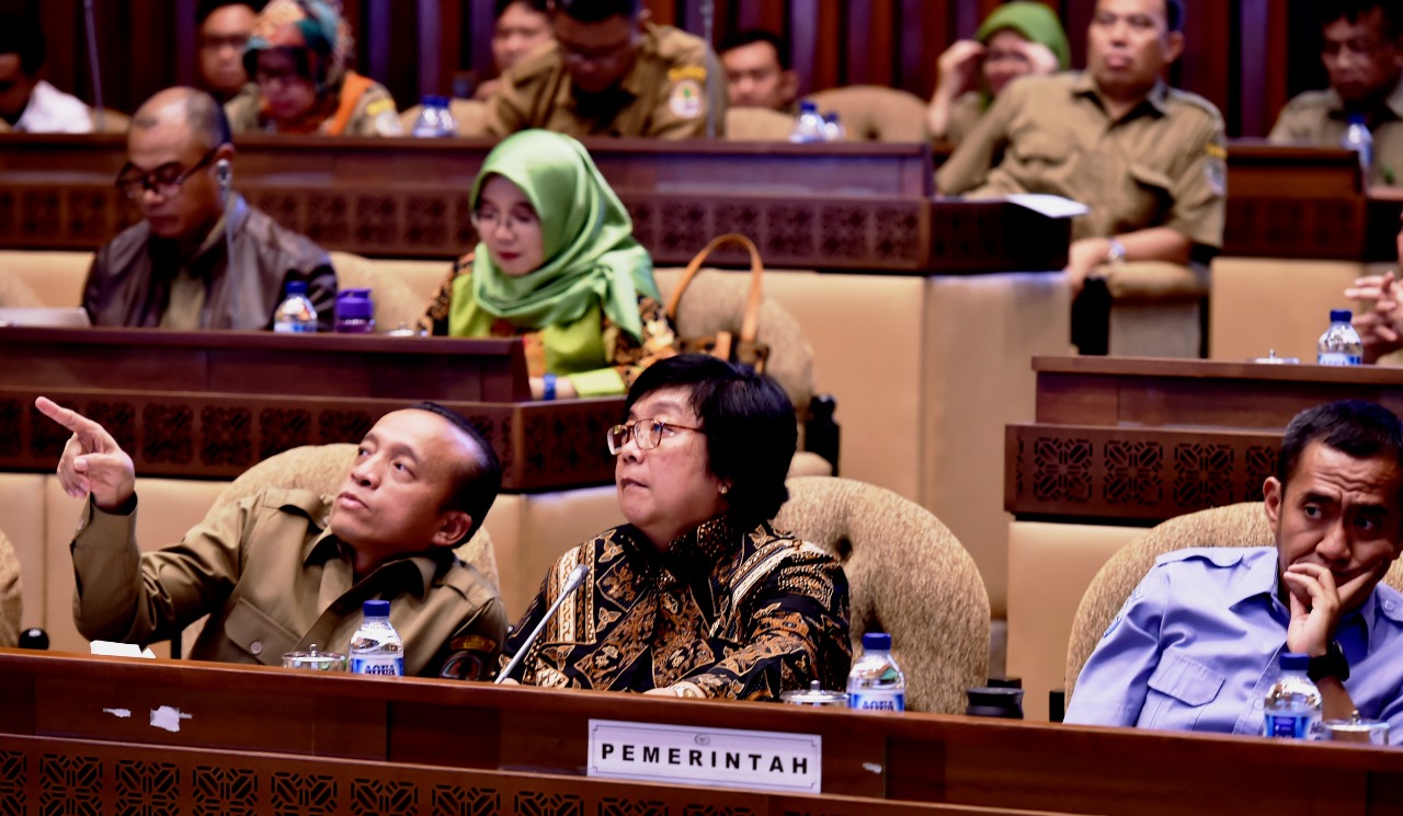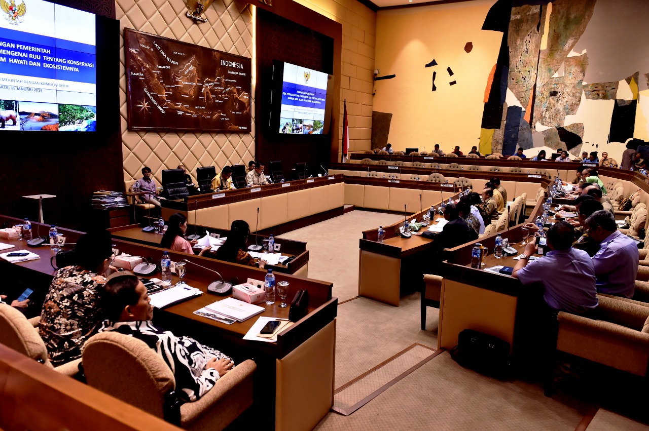 Pemerintah memberikan pandangan atas Penjelasan Dewan Perwakilan Rakyat Republik Indonesia (DPR RI) mengenai Rancangan Undang-Undang (RUU) tentang Konservasi Sumber Daya Alam Hayati dan Ekosistemnya (KSDAHE) saat rapat kerja dengan Komisi IV DPR RI di Gedung MPR DPR, Jakarta (15/1). Rapat kerja kali ini dilaksanakan bersama-sama dengan 5 kementerian terkait, yaitu KLHK, Kementerian Kelautan dan Perikanan, Kementerian Pertanian, Kementerian Dalam Negeri, dan Kementerian Hukum dan Hak Asasi Manusia.