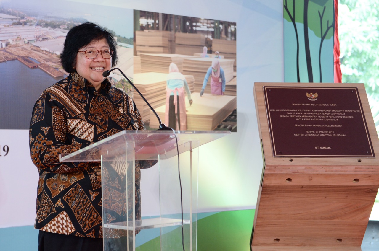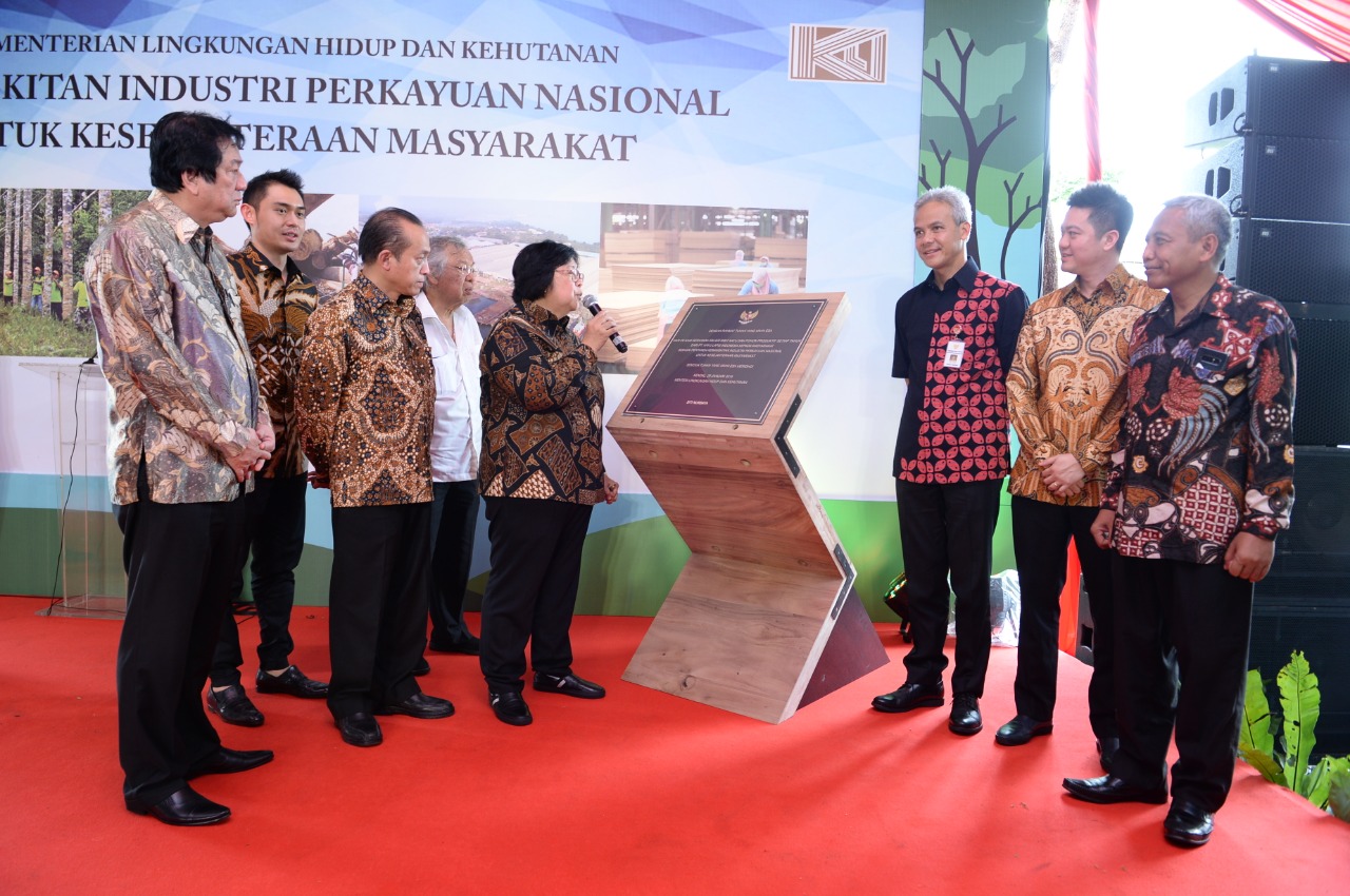 Menegaskan pentingnya peran hutan tanaman dan hutan rakyat dalam mendukung pasokan bahan baku bagi industri perkayuan nasional, Menteri LHK, Siti Nurbaya, dan Gubernur Jawa Tengah, Ganjar Pranowo sepakat untuk mencanangkan Kebangkitan Industri Perkayuan Nasional untuk Kesejahteraan Masyarakat.
