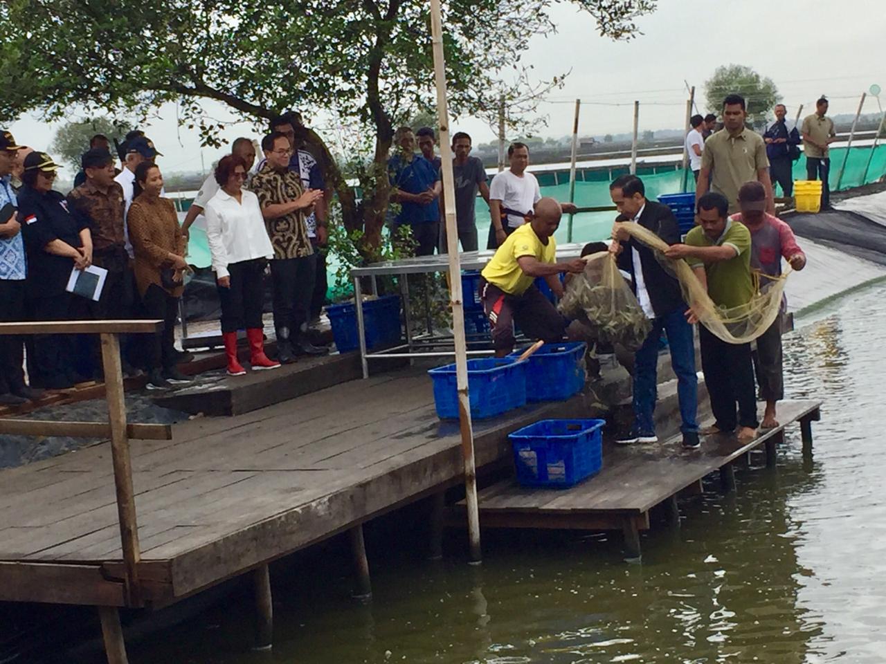 Presiden Joko Widodo Pimpin Panen Raya Udang Vaname di Muara Gembong Bekasi