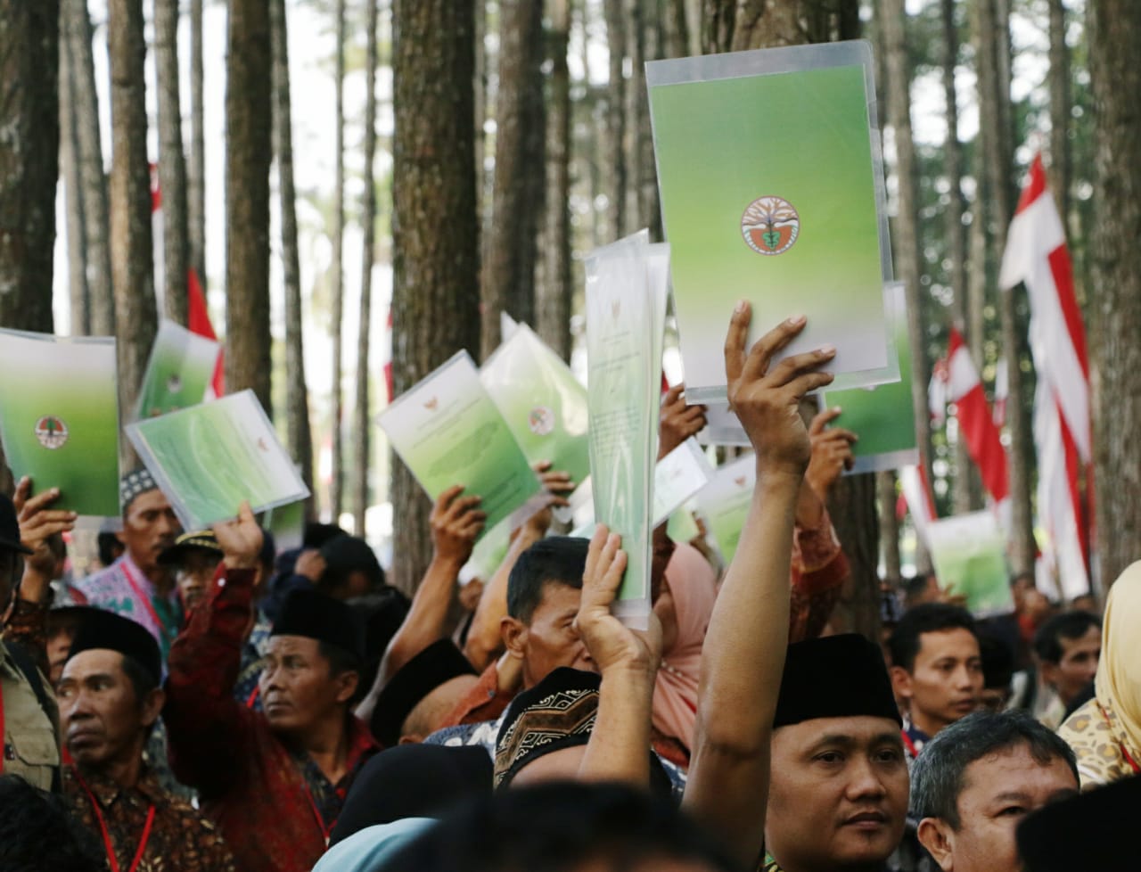 Kali ini, Presiden Joko Widodo menyerahkan 42 Unit SK Perhutanan Sosial seluas 13.976,28 Ha bagi 8.941 KK dari 12 Kabupaten di Jawa Barat, bertempat di Wana Wisata Pokland Kabupaten Cianjur, (8/2).