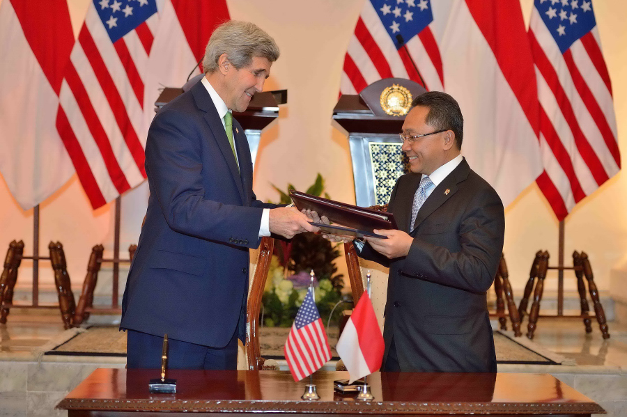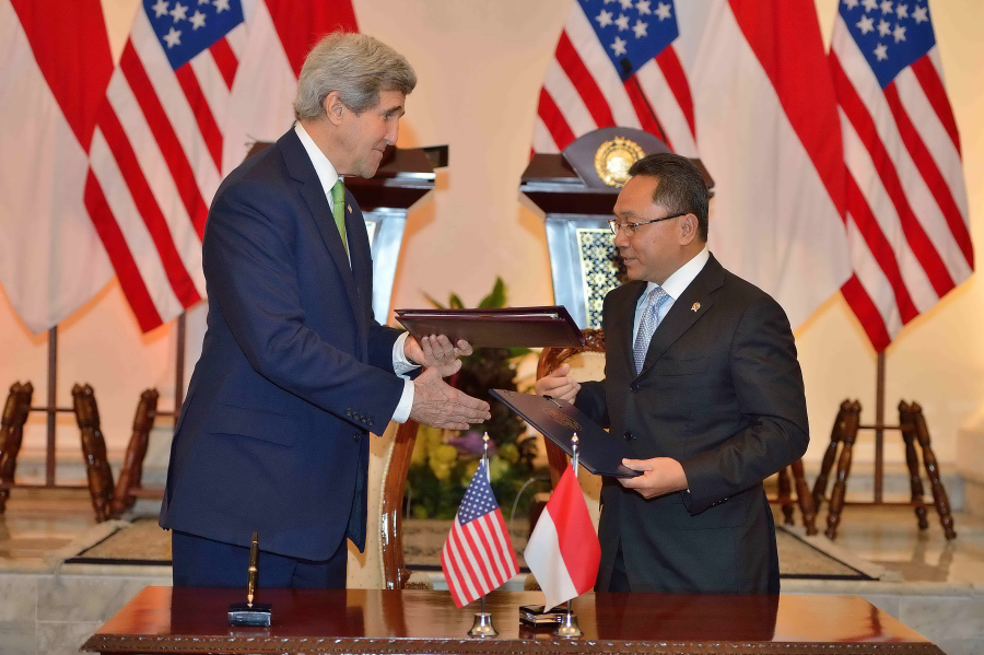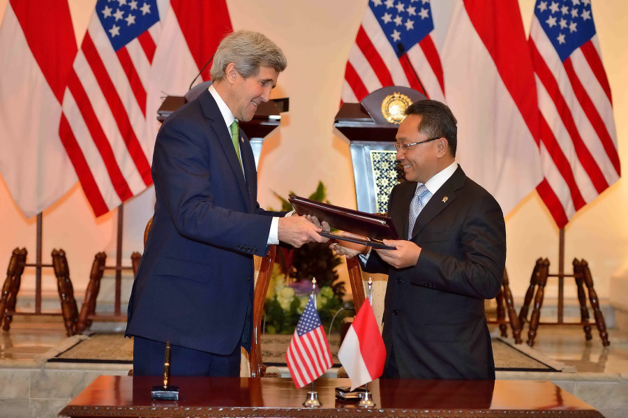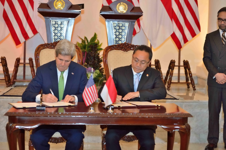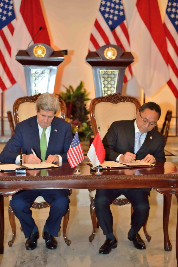 Pushumas Kemenhut,Jakarta: Menteri Kehutanan Zulkifli Hasan dan Menteri Luar Negeri Amerika Serikat (AS) John F Kerry pagi tadi, Senin (17/02) menandatangani Nota Kesepahaman (MoU)