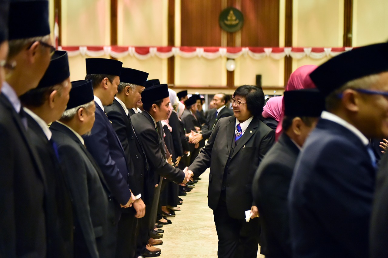 Sebanyak 2 Pejabat Pimpinan Tinggi Pratama (Eselon II) dan 179 Pejabat Administrator (Eselon III) lingkup KLHK, resmi dilantik. Bertempat di Auditorium Dr. Soedjarwo, Gedung Manggala Wanabakti, Jakarta (11/2), pelantikan ini dipimpin langsung oleh Menteri LHK, Siti Nurbaya.