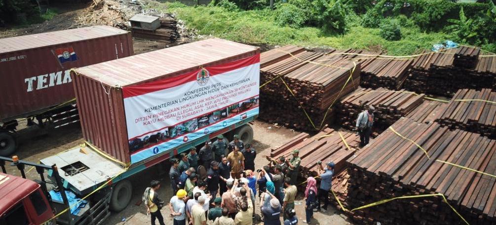 Sejumlah 38 kontainer kayu ilegal asal Kepulauan Aru, Maluku diamankan oleh Direktorat Jenderal Penegakan Hukum Lingkungan Hidup dan Kehutanan (Ditjen Gakkum) KLHK dari sejumlah tempat di Jawa Timur.