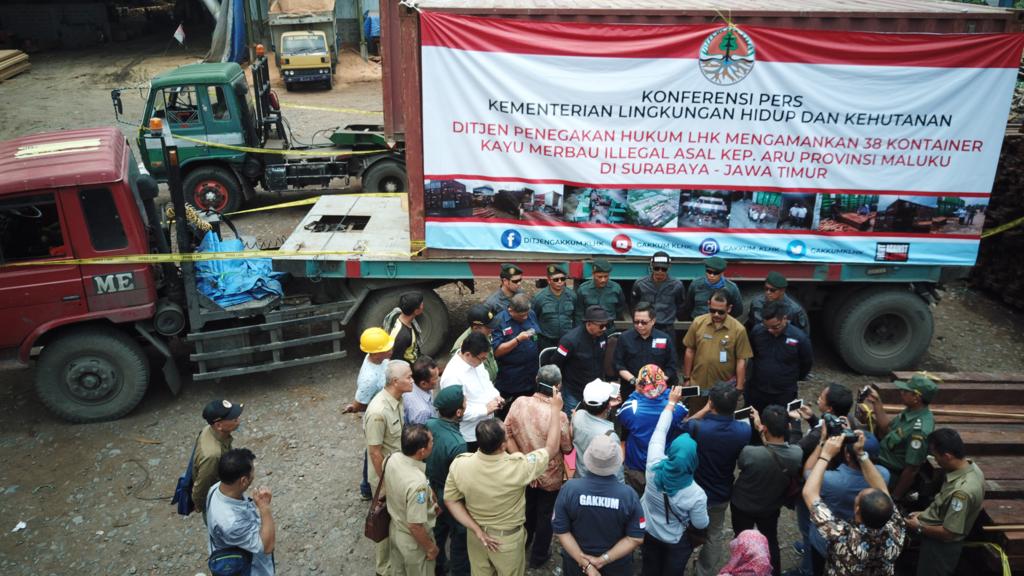 Melalui kerja keras dari Tim Direktorat Pencegahan dan Pengamanan Hutan (Dit. PPH), Ditjen Gakkum KLHK, ke 38 kontainer berisi kayu ilegal asal Kepulauan Aru, Maluku tersebut dapat diamankan pada tanggal 22 Februari 2019. Lokasi ke 38 kontainer tersebut tersebar dengan rincian: 14 kontainer ditemukan berada di tempat penampungan CV. CHM, Gresik; 13 kontainer di area PT. KAYT, Surabaya; dan 11 kontainer di area PT. AGJU, Pasuruan.